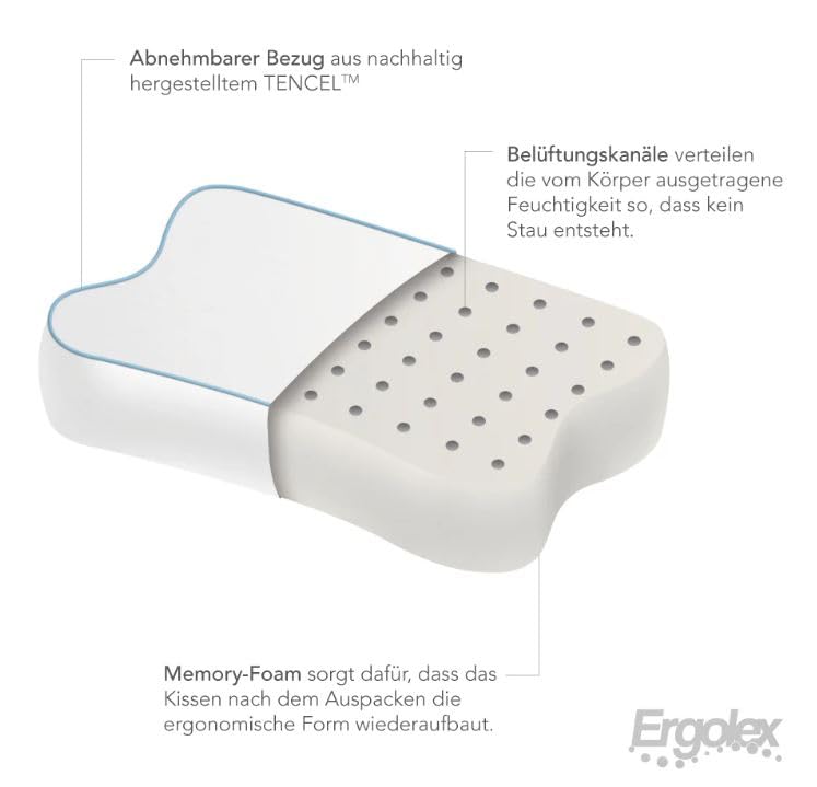 Ergolex ergonomiskais ortopēdiskais spilvens | Kakla spilvens/galvas spilvens kakla sāpēm | Atmiņas putu spilvens gulētājiem uz sāniem, muguras un vēdera | Miega spilvens/spilvens vīriešiem un sievietēm