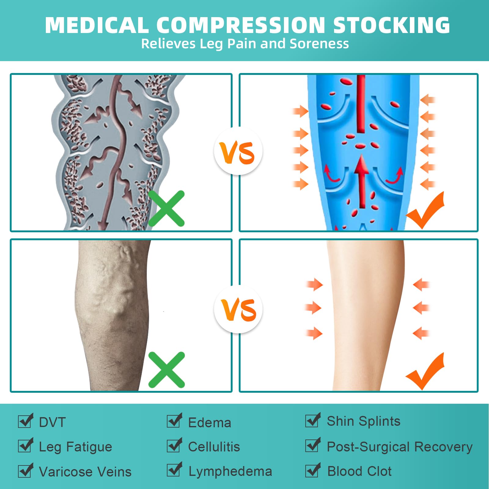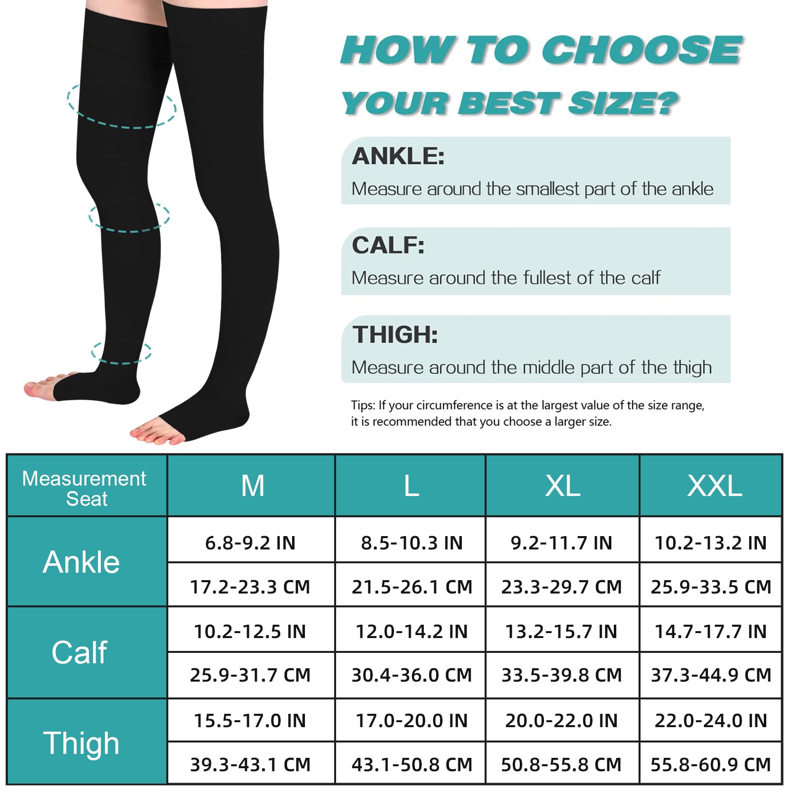 Evolyline 2 pāri kompresijas zeķu sievietēm un vīriešiem, II klases augšstilbu atbalsta zeķes, kompresijas zeķes ceļojumiem ar pakāpenisku atbalstu