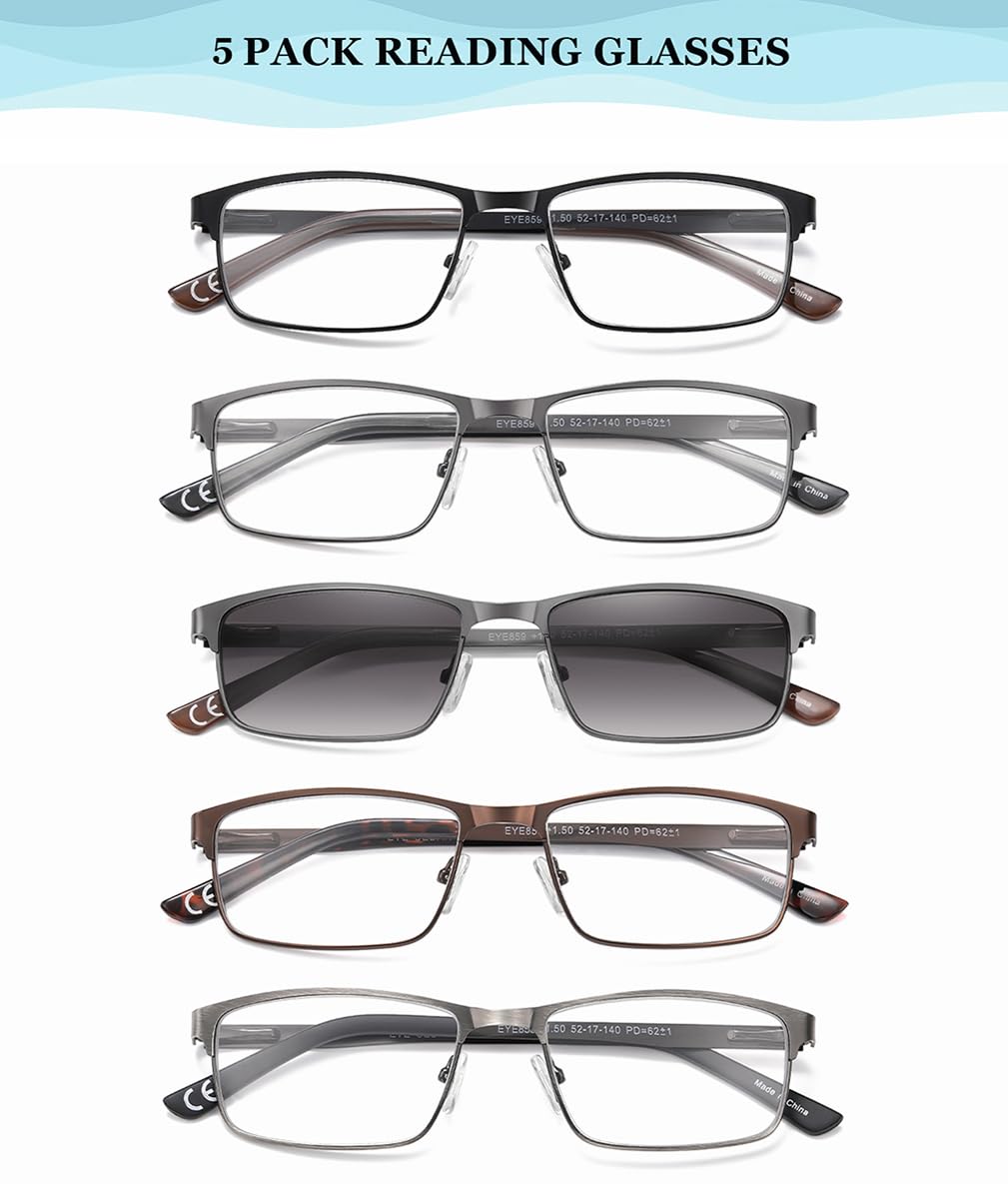- 5 gab. iepakojumā: šīs lasāmbrilles vīriešiem ir pieejamas 5 krāsās, tostarp melnā, metāliski brūnā, brūnā, matēti pelēkā un saulesbriļļu lasāmbrilles. Tonētas lēcas filtrē UV gaismu lietošanai ārpus telpām. Ņemiet brilles līdzi, lai kur jūs dotos; Novietojiet brilles savā iecienītākajā lasīšanas vietā, lai ērti lasītu gan ceļā, gan ikdienā.