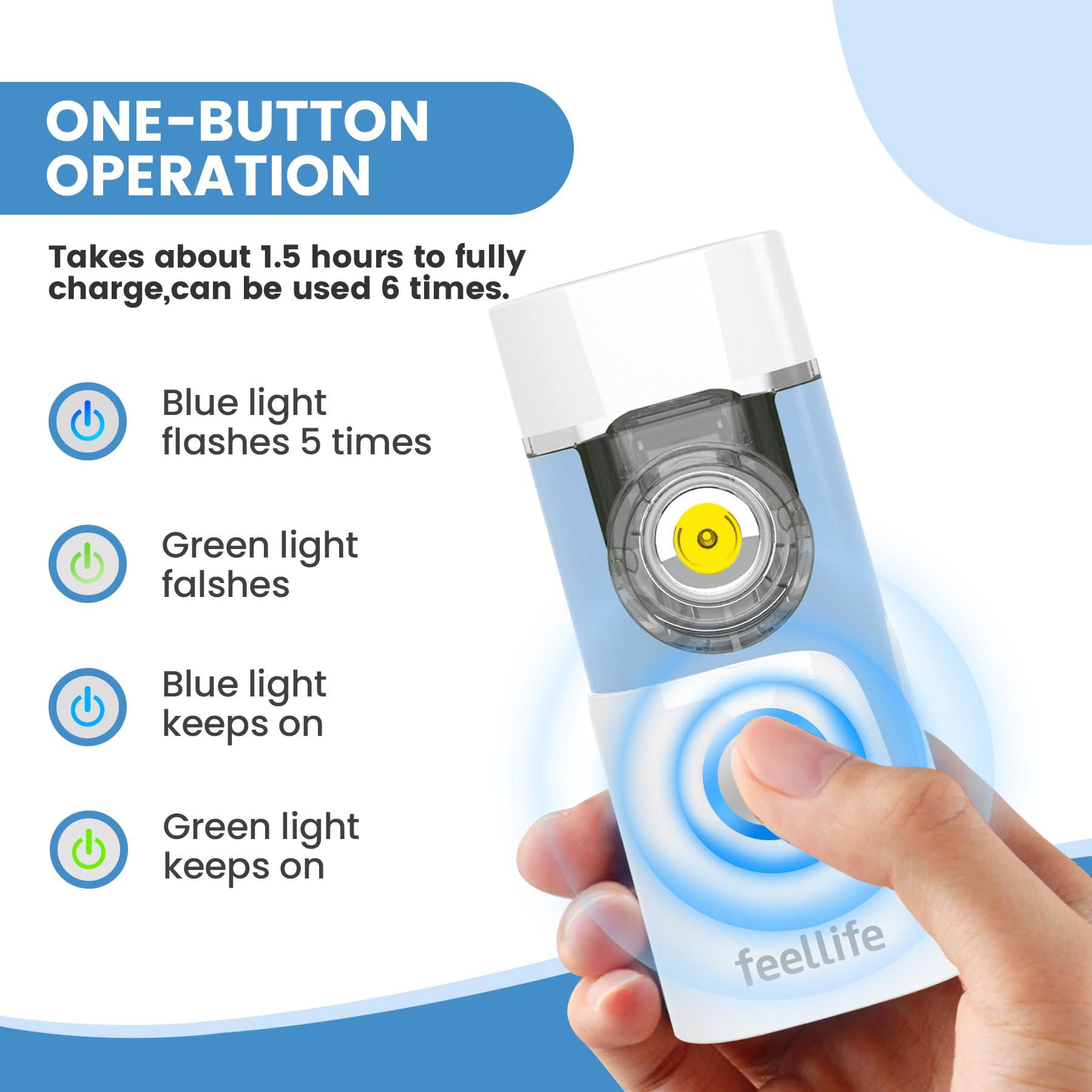 - 【Viegls un pārnēsājams】 FEELLIFE bērnu inhalators ir ļoti maza un eleganta rokas ierīce, tāpēc to var viegli uzglabāt skolas somā vai drēbju somā. Inhalators tiek uzlādēts, izmantojot USB kabeli, un, kad pārnēsājamais inhalators ir pilnībā uzlādēts, to var lietot līdz 3,5 stundām. Tas nodrošina, ka jūs varat ieelpot jebkurā laikā un vietā.