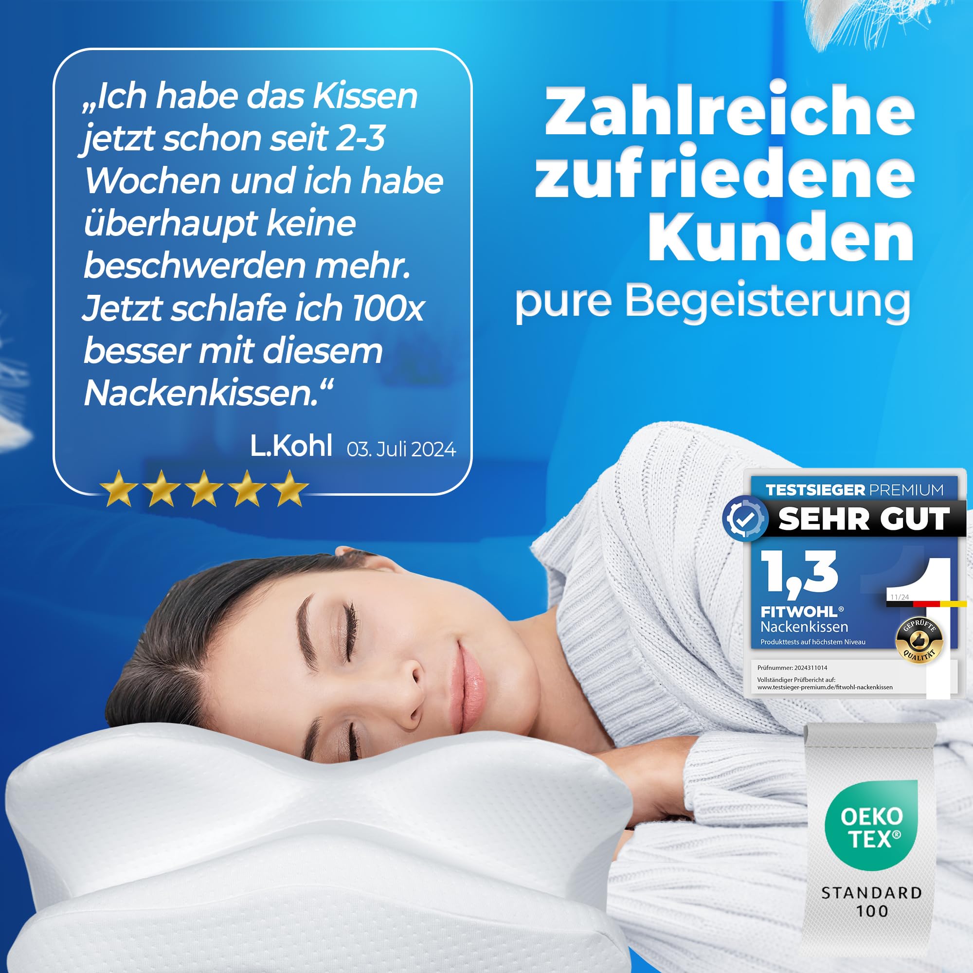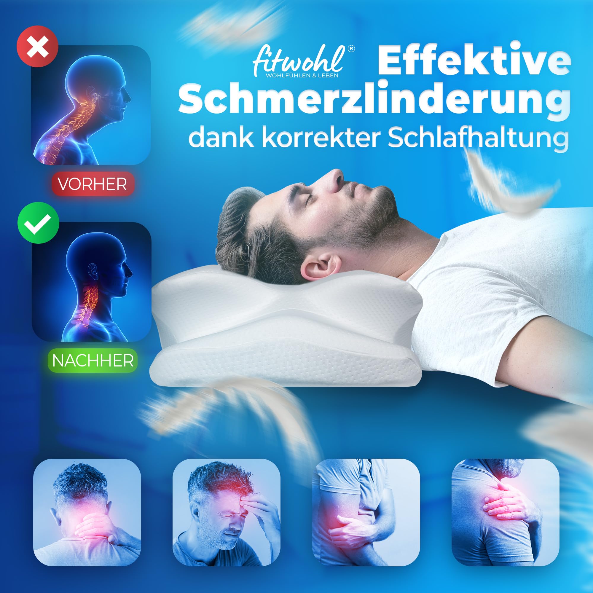 - OPTIMĀLS ATBALSTS: Šis ergonomiskais spilvens tika īpaši izstrādāts kā risinājums kakla un muguras sāpēm. Pateicoties ergonomiskajai formai un atmiņas putu iekšējam kodolam, tas lieliski pielāgojas jebkurai gulēšanas pozai. Nav svarīgi, vai guļat uz muguras, sāniem vai vēdera.