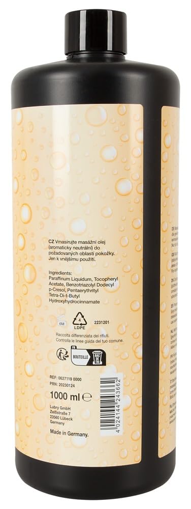 Flutschi Orgy-Oil – pavedinoša masāžas eļļa sievietēm un vīriešiem, ūdenī šķīstoša un viegli noskalojama, ādai draudzīga, 1l