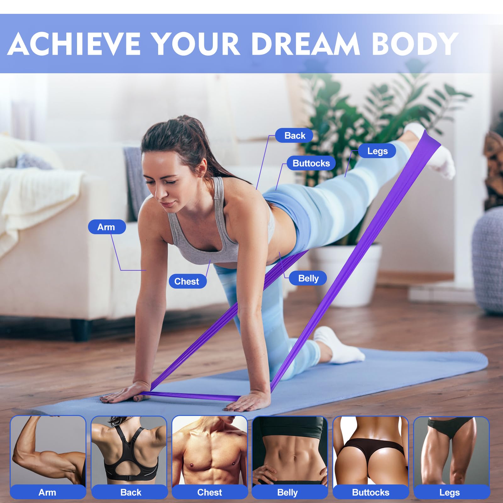 - 【Spēks un elastība】 Fitnesa joslai ir lieliska elastība un tā var nodrošināt pareizu spriegumu muskuļu treniņiem. Vingrošanas lenti var aptīt ap roku, lai palielinātu spēku, vai sasiet gredzenveida lentē, lai panāktu efektīvāku visa ķermeņa stiepšanu un trenētu muskuļu grupas dažādās ķermeņa daļās.