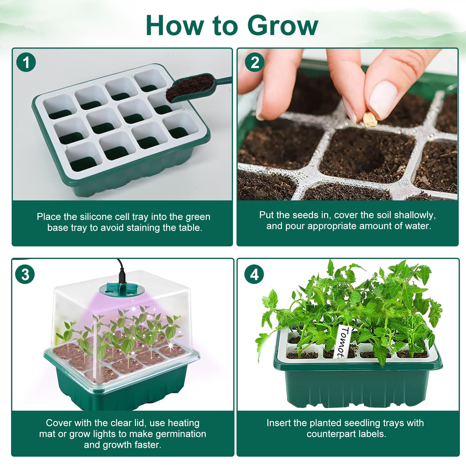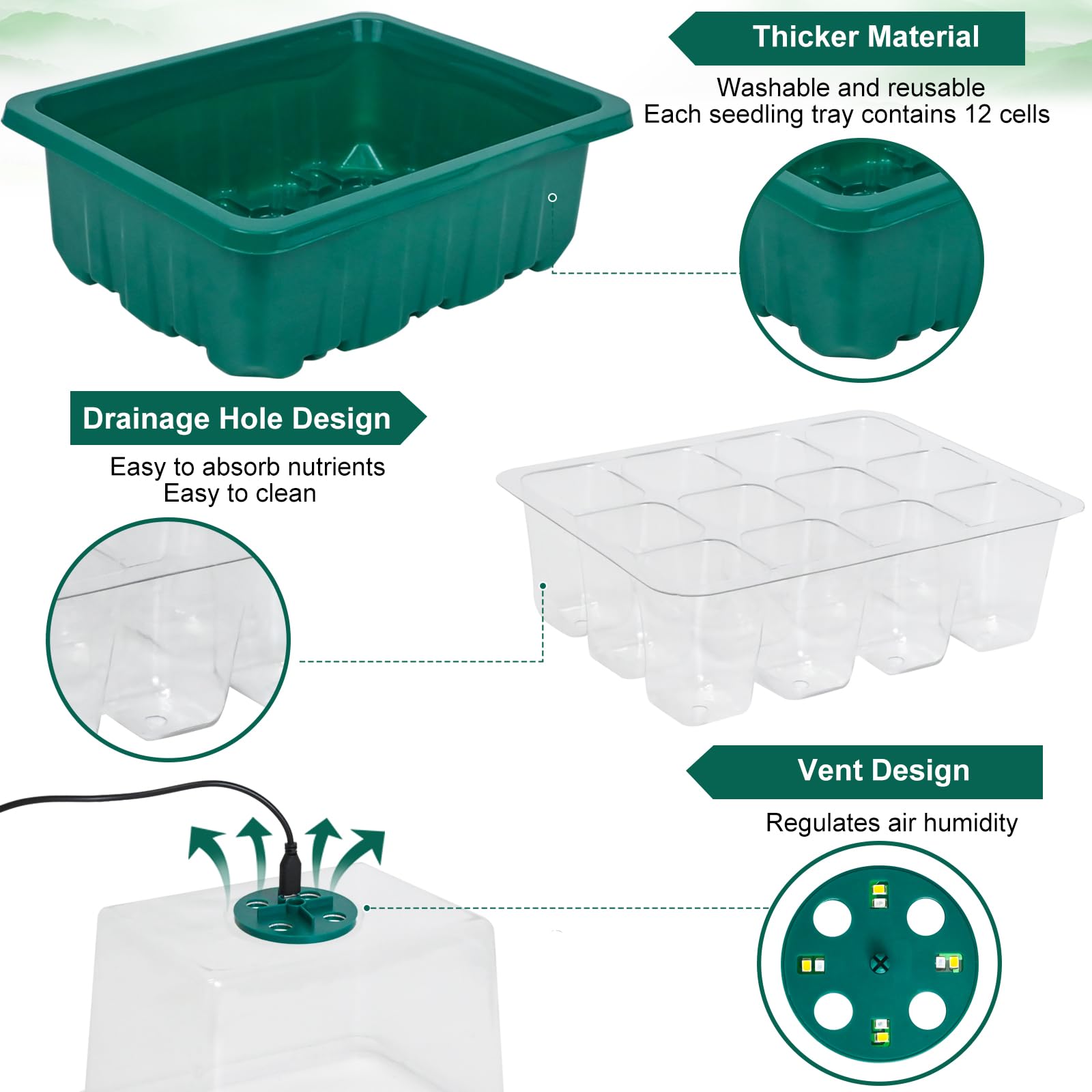 - 🌱【Uzlabot paceltu vāku】Caurspīdīgais vāks ir 10 cm augsts, kas nodrošina pietiekami daudz vietas stādu augšanai, un vienlaikus ir viegli novērot augu augšanas procesu. Apakšā ir drenāžas caurumi, lai liekais ūdens varētu savlaicīgi notecēt.