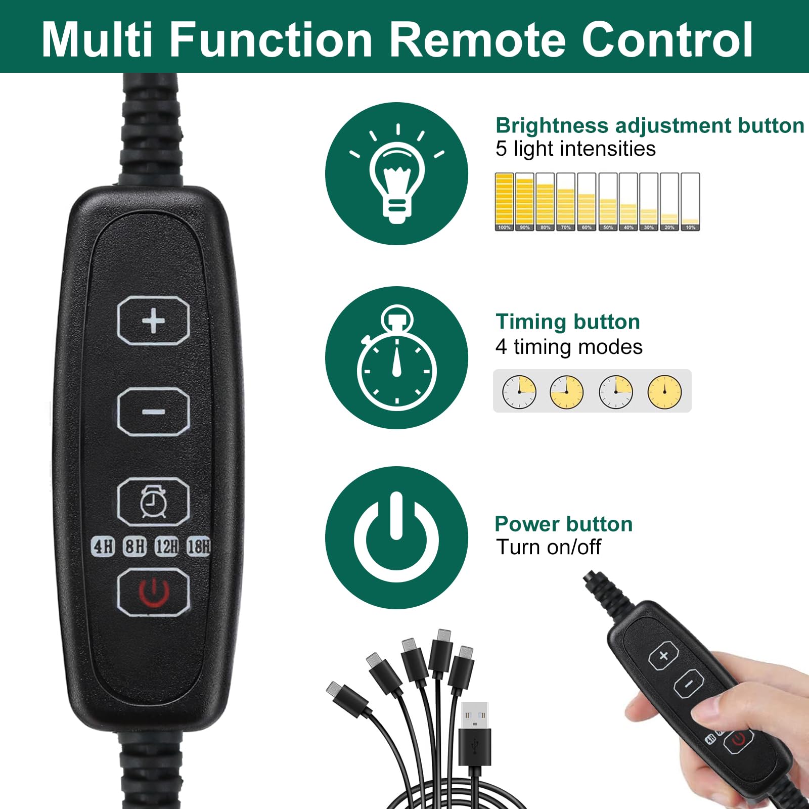 - 🌱【Apgaismojuma dizains】Augu augšanas gaismai ir 5 ātrumi, spilgtumu var pielāgot atbilstoši situācijai. Ar taimera funkciju ir 4 iespējas: 4 stundas, 8 stundas, 12 stundas, 18 stundas. Jūs varat mākslīgi kontrolēt gaismas kvalitāti, gaismas intensitāti un gaismas ciklu, lai veicinātu augu augšanu.