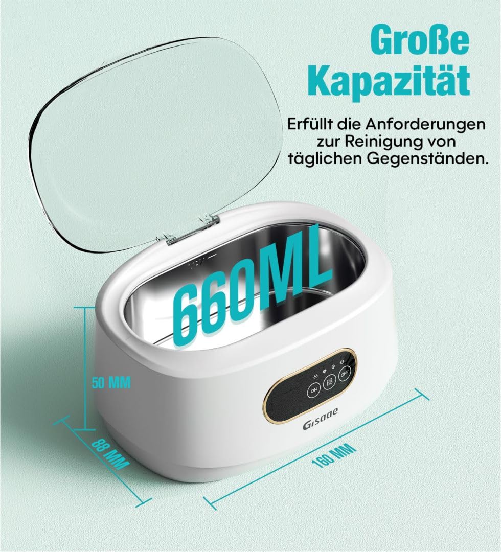 - 660 ml liela ietilpība: Ar 660 ml lielo ietilpību mūsu ultraskaņas tīrītājs piedāvā plašu saderību, spējot tīrīt dažādus priekšmetus. Korpuss ir izgatavots no ABS plastmasas, kas pazīstama ar savu izcilo karstumizturību. Iekšējā tvertne ir izgatavota no 304 nerūsējošā tērauda, kas nodrošina izturību un izturību pret koroziju. Ultraskaņas vannas ultraskaņas tīrītāja lietošana ietaupa laiku un nodrošina drošu komfortu
