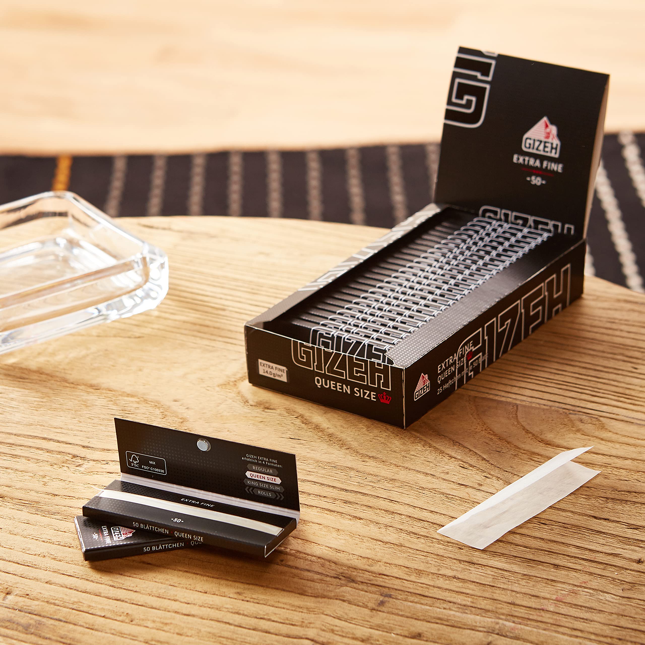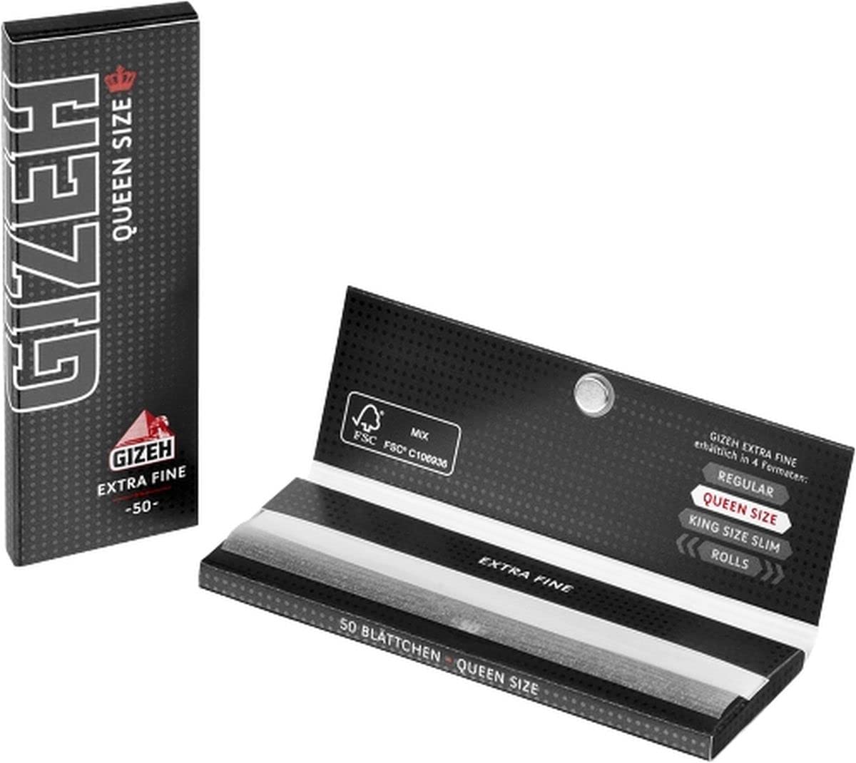 Pasaulē, kas griežas arvien ātrāk, mēs visi ilgojamies pēc neliela palēninājuma. Pēc īsiem pārtraukumiem bieži vien “stresainajā” ikdienas dzīvē. Laiks mūsu individuālajiem mirkļiem. Palutiniet sevi ar šiem prieka mirkļiem kopā ar GIZEH. Kā viens no vadošajiem smēķēšanas piederumu ražotājiem, GIZEH piedāvā rūpīgi atlasītu produktu klāstu, kas sastāv no pirmklasīgiem iesaiņojuma papīriem, filtriem un īpaši atlasītiem aksesuāriem individuāliem baudījuma mirkļiem. GIZEH BLACK® Queen Size rullīšu papīru izmērs ir 44 x 78 mm (1 1/4 formāts), un tie atrodas starp King Size un Regular Size rullīšu papīriem. Īpaši smalkais papīrs ar pamatmasu 14 g/m² un līmvirsma, kas izgatavota no dabīgā gumiarābika, nodrošina tīru un nevainojamu baudījumu. Papīri deg ļoti lēni un nodziest, ja rullējamais papīrs netiek uzvilkts. Katrā iepakojumā ir 50 papīri, un tas ir aprīkots ar tipisko GIZEH magnētisko aizdari. Tas nozīmē, ka rullīšu papīriņi vienmēr ir pilnībā aizsargāti un iepakojumu var atkal un atkal aizlīmēt. Iepakojums, protams, ir pilnībā pārstrādājams. Viss GIZEH BLACK® produktu klāsts ir ne tikai vegānisks, bet arī iegūts no atbildīgas mežsaimniecības un tāpēc ir FSC sertificēts.