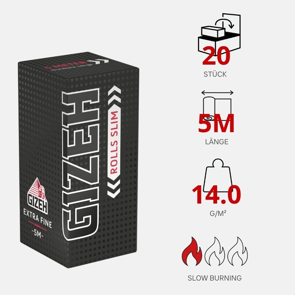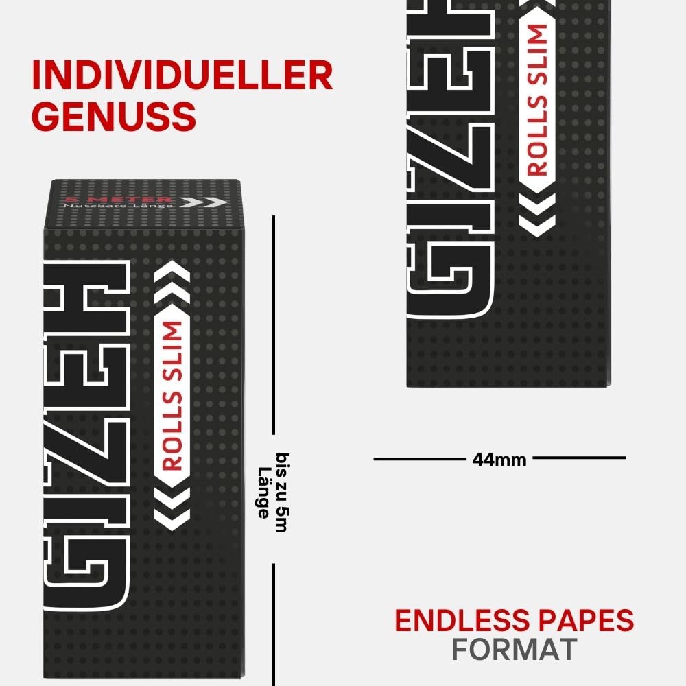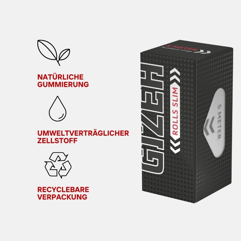 Pasaulē, kas griežas arvien ātrāk, mēs visi ilgojamies pēc neliela palēninājuma. Pēc īsiem pārtraukumiem bieži vien “stresainajā” ikdienas dzīvē. Laiks mūsu individuālajiem mirkļiem. Palutiniet sevi ar šiem prieka mirkļiem kopā ar GIZEH. Kā viens no vadošajiem smēķēšanas piederumu ražotājiem, GIZEH piedāvā rūpīgi atlasītu produktu klāstu, kas sastāv no pirmklasīgiem papīriem, filtriem un īpaši atlasītiem aksesuāriem individuāliem baudījuma mirkļiem. Mūsu populārākajā King Size bukletā ar GIZEH tipisko magnētisko aizdari ir 34 īpaši smalki King Size Slim papīri un 34 iepriekš perforēti filtra uzgaļi. Tas padara ripināšanu vēl ērtāku, un jums vienmēr ir pa rokai papīrs un filtra uzgaļi. Filtra uzgaļi ir dubulti perforēti lietošanai standarta vai plānā formātā. Īpaši smalkā papīra pamatmasa ir 14 g/m², un tā gumijas pārklājums ir izgatavots no dabīgā gumiarābika — akācijas koka sulas. Īpaši smalkais papīrs nodrošina tīru un neviltotu baudījumu. Papīri deg ļoti lēni un nodziest, ja tos neaizvelk. Viss GIZEH BLACK® produktu klāsts ir ne tikai vegānisks, bet arī nāk no atbildīgas mežsaimniecības un tāpēc ir FSC sertificēts.