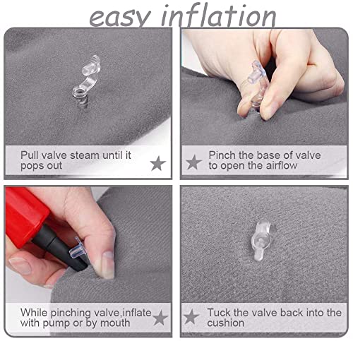 - 【Viegli piepūšams】Spiediena sāpju sēdekļa gredzenu var ātri un viegli piepūst ar muti vai pievienoto gaisa sūkni. Citus spilvenus ir grūti piepūst, un tie var izraisīt elpas trūkumu. Ar mūsu piedāvāto gaisa sūkni jūs varat ātri un vienkārši piepūst savu spilvenu jebkurā laikā