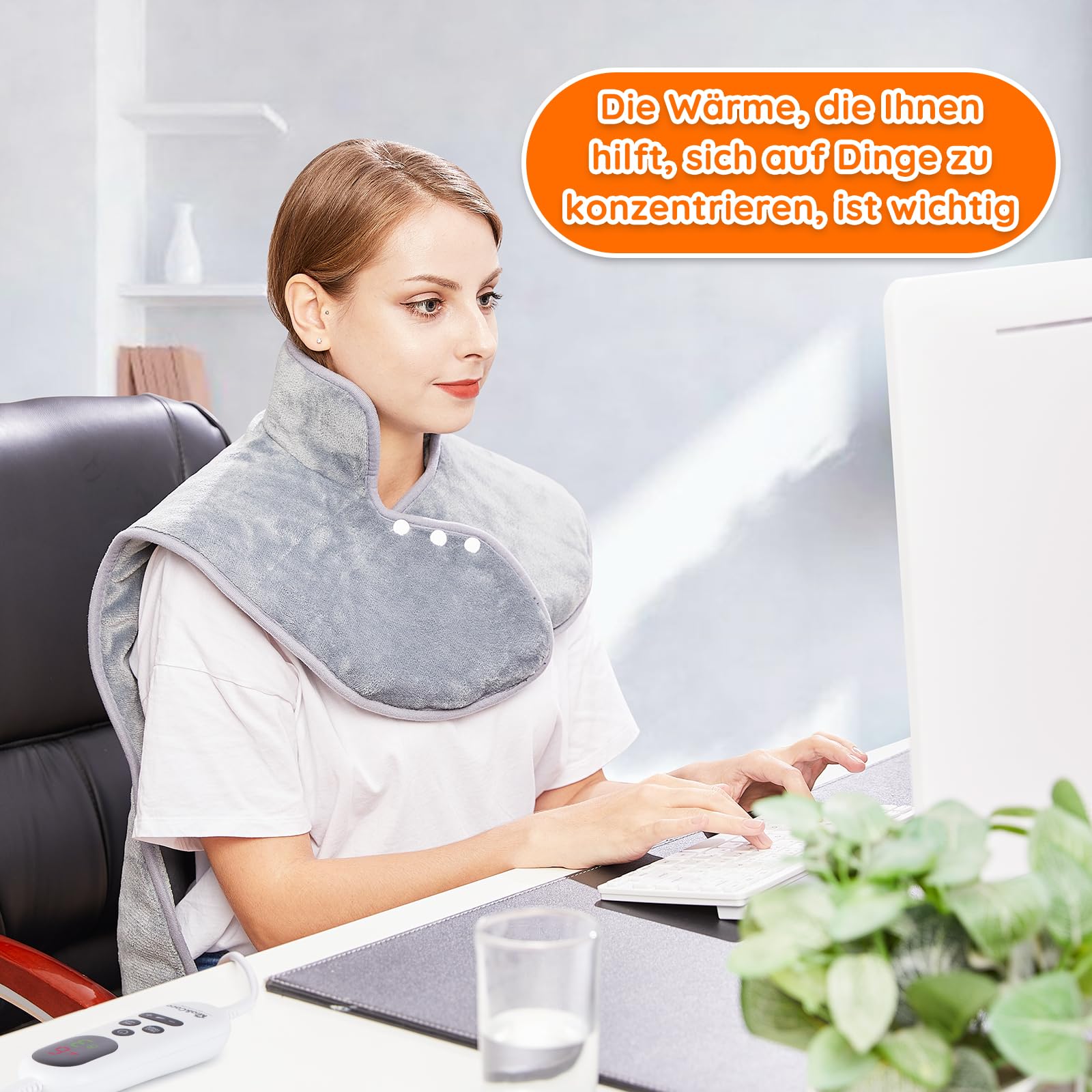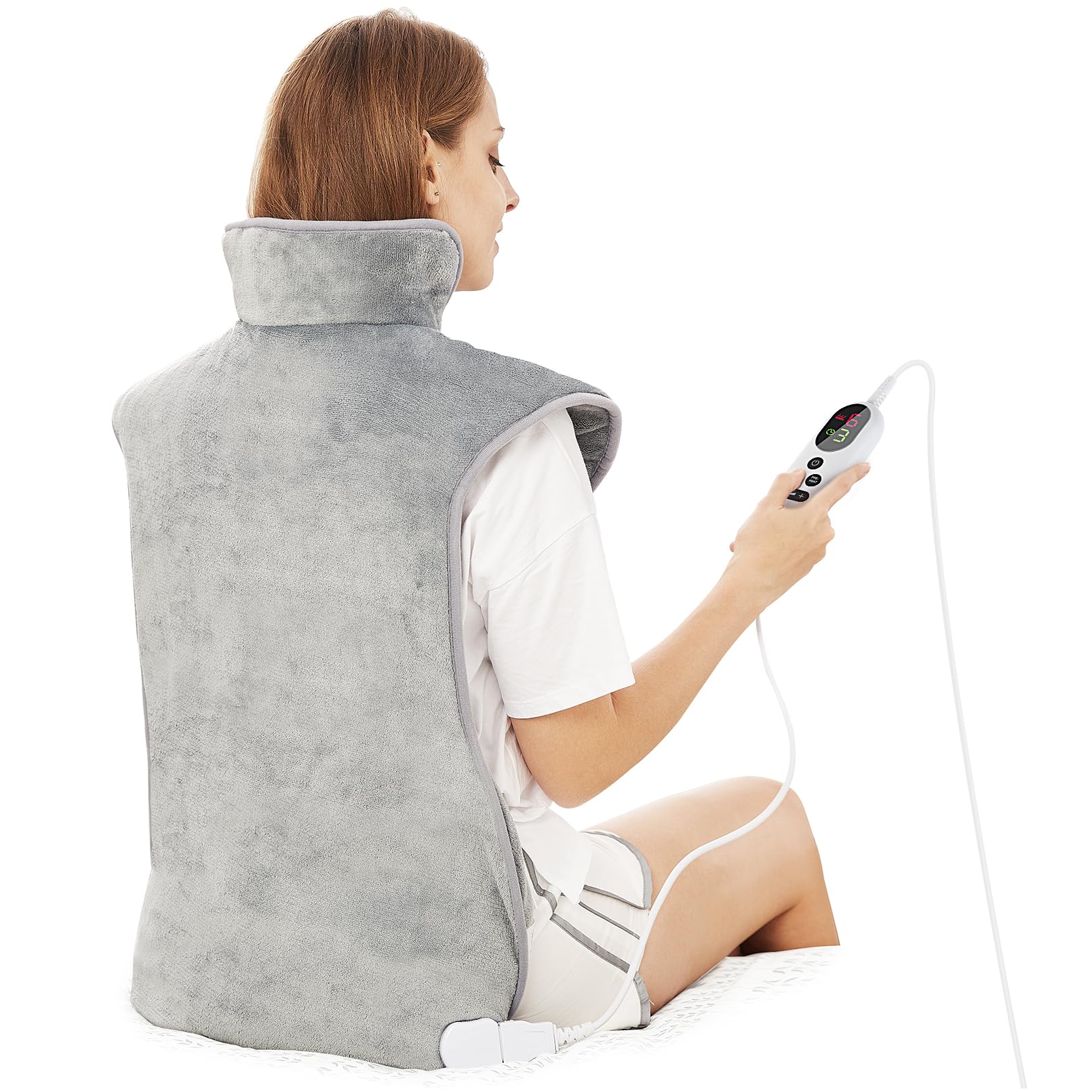 Heizkissen für Rücken Schulter Nacken 60x100cm Wärmekissen mit Abschaltautomatik, Schnelle Erwärmung, mit Taillenriemen, Rückenwärmer Heizdecke 6 Heizstufen, Auto-OFF-Timer, Flanellmaterial, Waschbar
