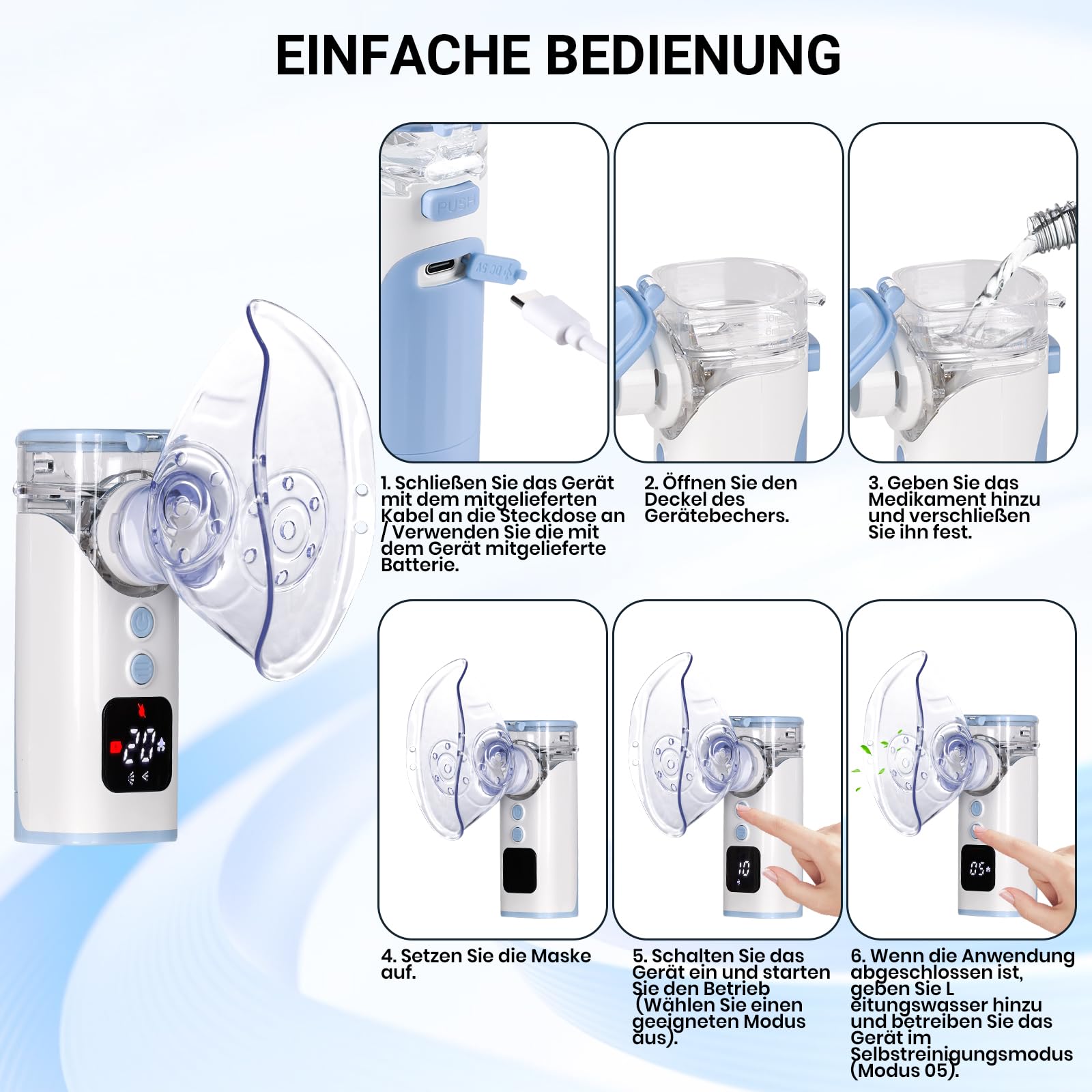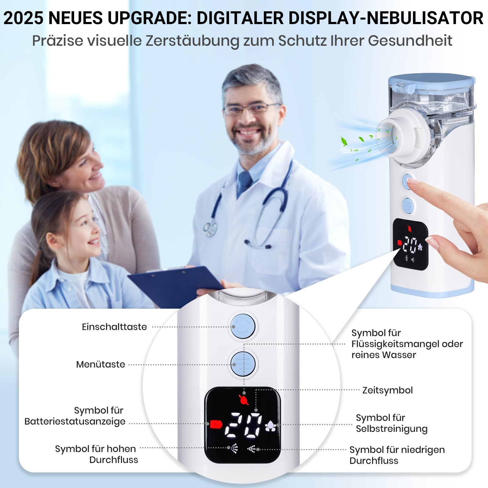 - 【Augsti efektīvs inhalators】 Šim 2025. gada uzlabotajam inhalatoram ir ātrāka atomizācija. Daļiņu izmērs ir <5 μm. Atomizācijas ātrums ir vismaz 0,2 ml/min. Zāles ātri un efektīvi uzsūcas un nonāk tieši plaušās. Efektīvi mazina dažādus elpošanas simptomus un nodrošina brīvu elpošanu.