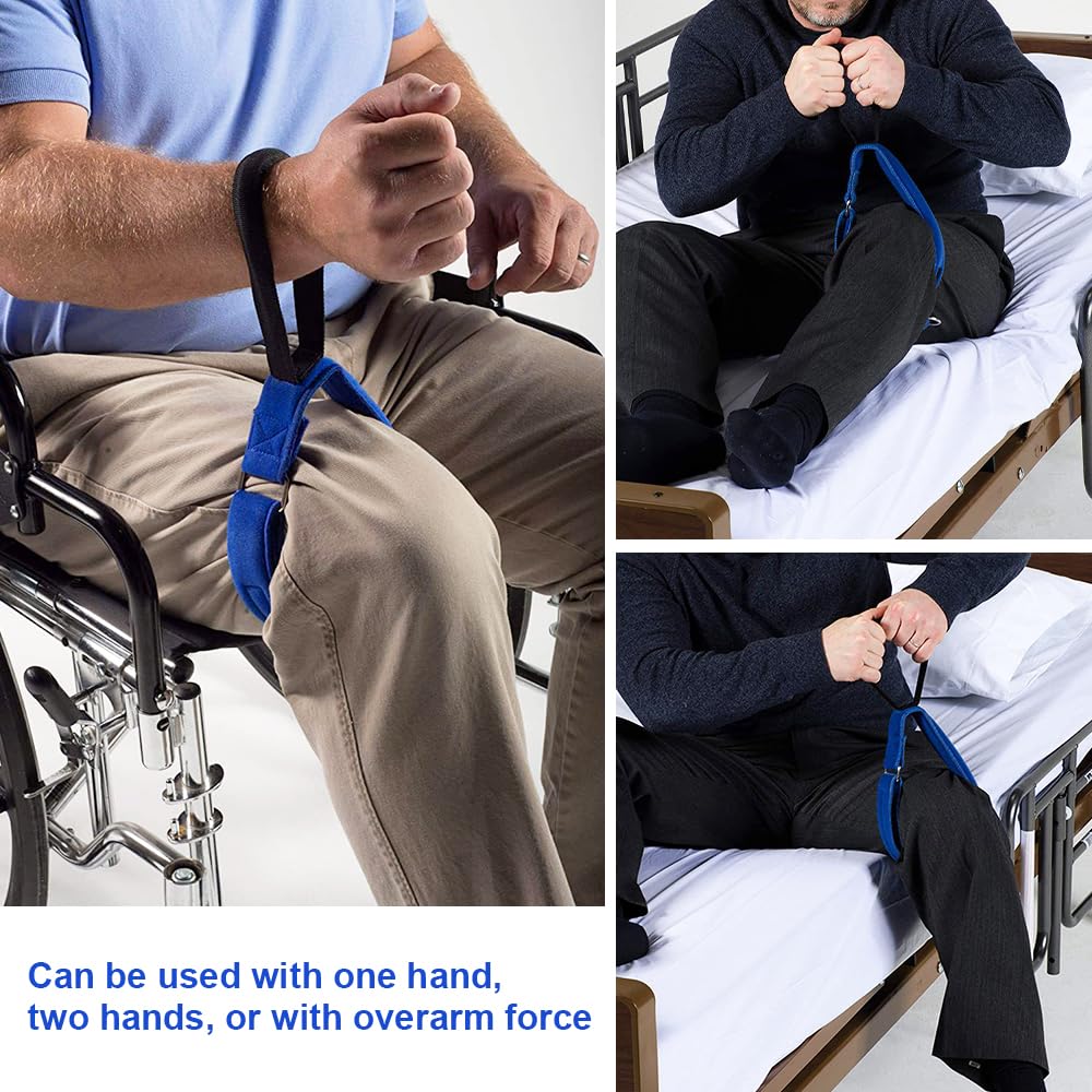 - Droši kustiniet kājas: augšstilbu pacelšanas josta, kas atvieglo kāju pacelšanu un pārvietošanu. Šī kāju pacelšanas josta ļauj iekāpt un izkāpt no gultas, vannas, transportlīdzekļa vai ratiņkrēsla, neprasot palīdzību, un ļauj viegli pielāgot kāju pozīciju sēžot vai guļot. Ideāli piemērots cilvēkiem ar kāju vājumu vai paralīzi.