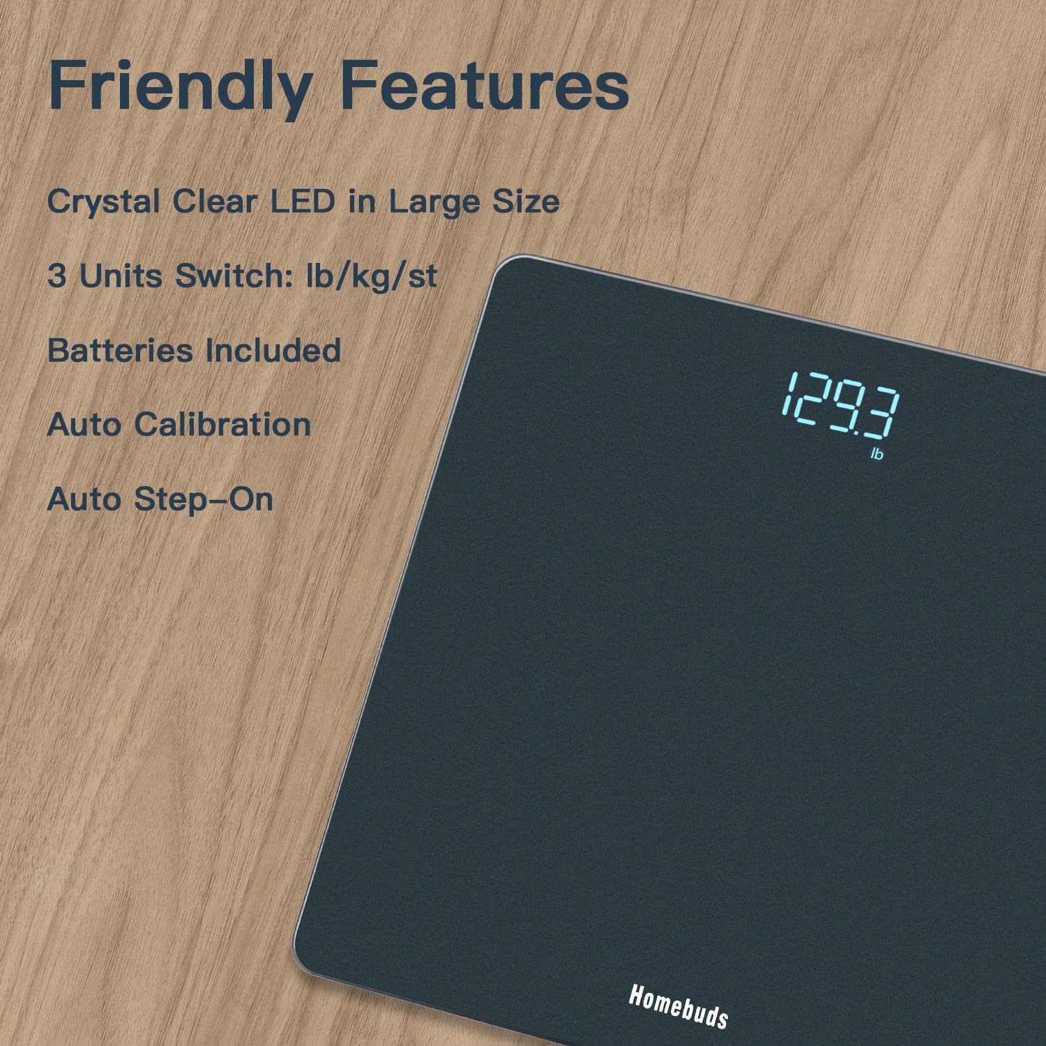 - VIEGLI REDZAMA LED INDIKATORS – Ķermeņa svari ir aprīkoti ar kristāldzidrām, lielā skaitā izvietotām LED gaismām, kas ir īpaši izstrādātas, lai skaidri attēlotu skaitļus jebkuros apstākļos un saglabātu vienādu spilgtumu visā akumulatora darbības laikā.