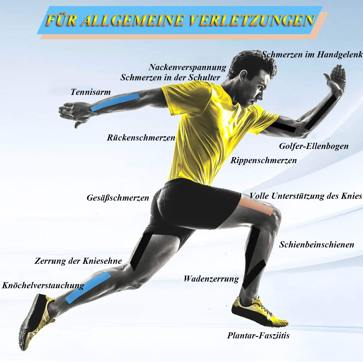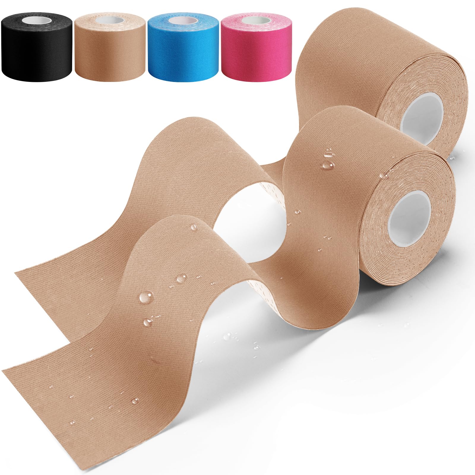 • 【Ūdensizturīgs un sviedru necaurlaidīgs】 Kinezioloģiskajam teipam ir unikāla lateksa nesaturoša līmviela uz akrila bāzes, kas viļņveidīgi uzklāta teipa aizmugurē, ļaujot mitrumam viegli notecēt no teipa zonas un teipam ātri nožūt. Ar to var dušoties vai peldēties bez jebkādām problēmām, un tas ir ideāli piemērots lietošanai kā sporta teips.
