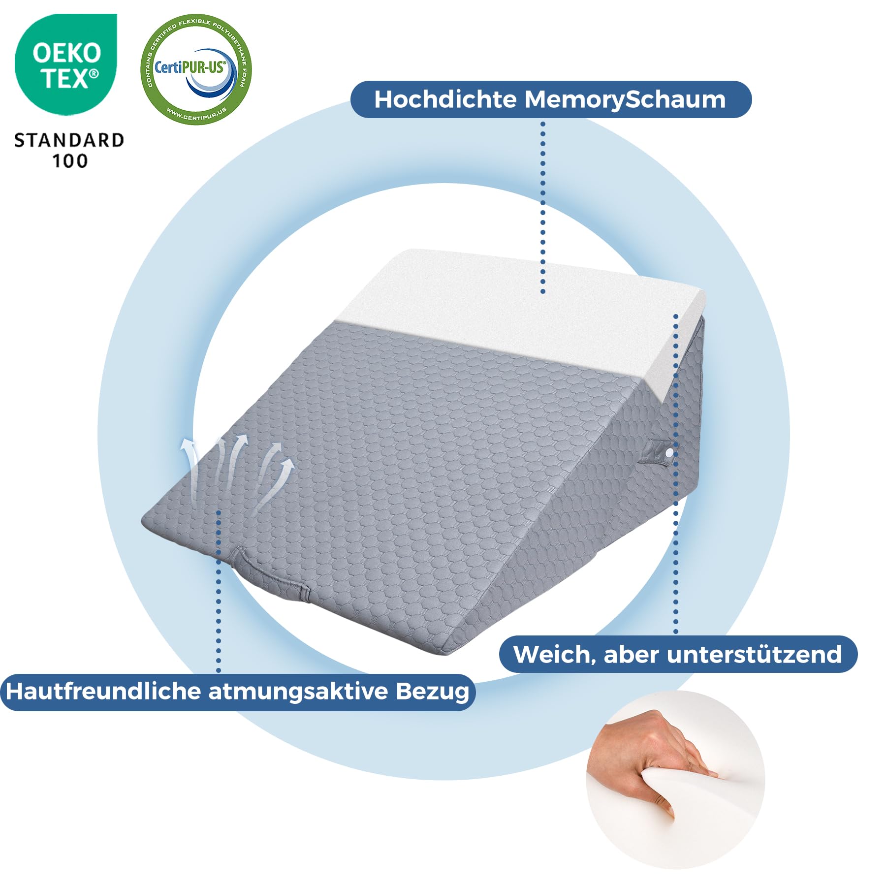 - 【Augstākās kvalitātes ķīļveida trīsstūra spilvens】INFANZIA ergonomiskais ķīļveida spilvens ir izgatavots no augstas kvalitātes 25D augsta blīvuma putām, kas ir ērtas un elpojošas. Ķīļveida spilvens gulēšanai ir sertificēts ar CertiPUR US un OEKO-TEX, padarot to drošu un hipoalerģisku.