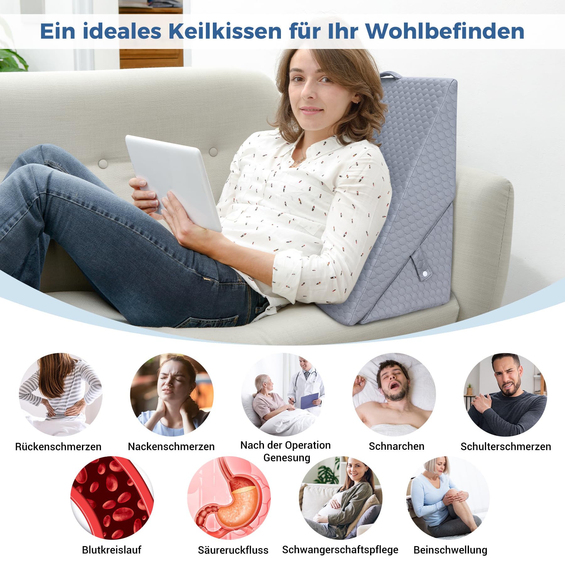 - 【Lieliska dāvanu ideja】Ideāli piemērota galvas, kājas vai kājas pacelšanai. INFANZIA ķīļveida miega spilvens ir lieliska dāvana draugiem un vecākiem visos svētkos! To var novietot vertikāli pie galvgaļa, lai jūs varētu lasīt, skatīties televizoru vai atpūsties gultā, paceļot ķermeņa augšdaļu, vienlaikus saglabājot komfortu pārējai ķermeņa daļai.