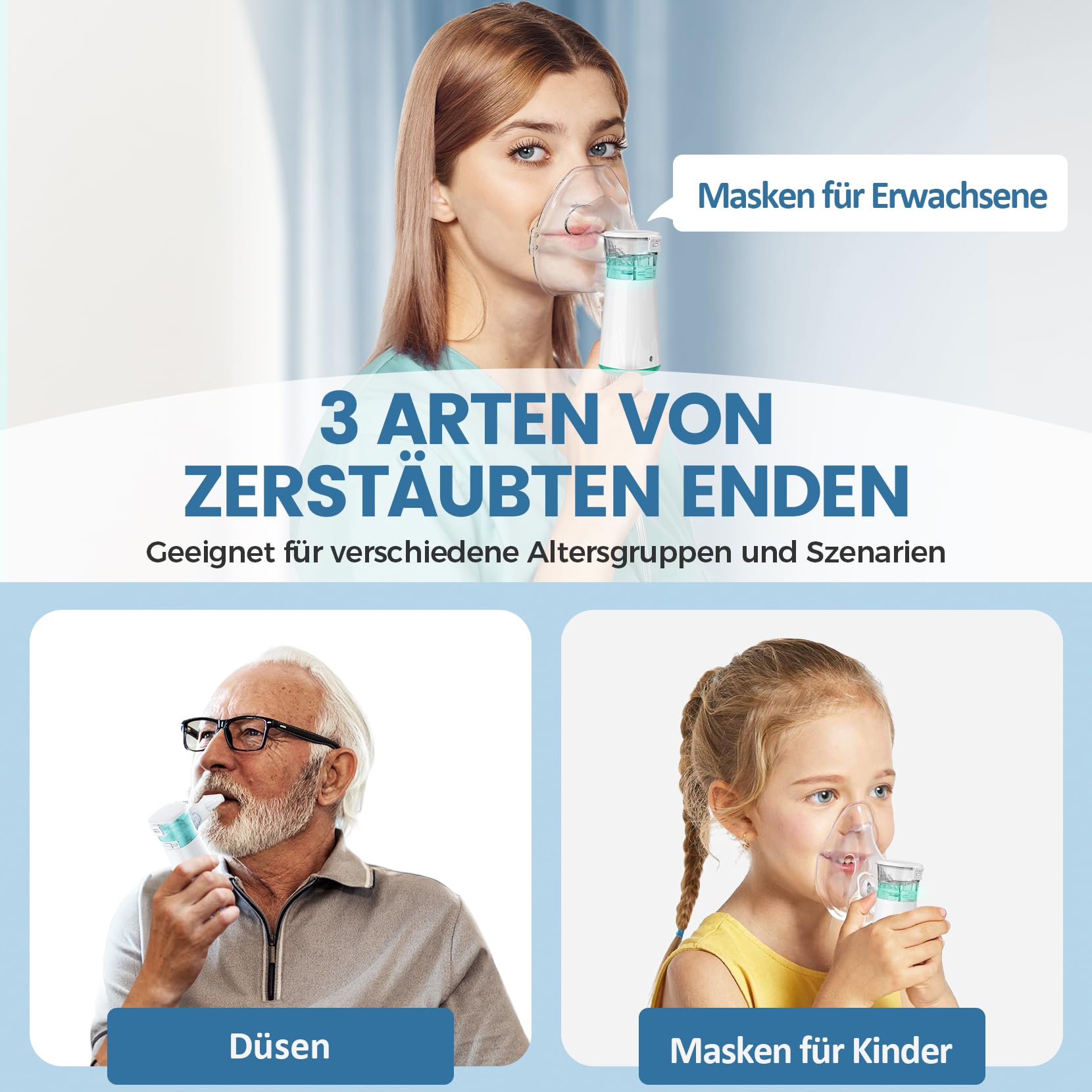 - ✅Nebulizatora inhalatora perfekti piederumi: Elektriskā inhalatora komplektā ietilpst pieaugušo maska, bērnu maska, iemutnis un USB uzlādes kabelis, kā arī daudzvalodu lietošanas instrukcija. Bērnu maskas ir pielāgotas bērnu sejas formai, tām ir laba piegulšana un hermētiskums.❗Piezīme: Nelietojiet destilētu/attīrītu ūdeni vai eļļainus šķidrumus. Var izmantot krāna ūdeni
