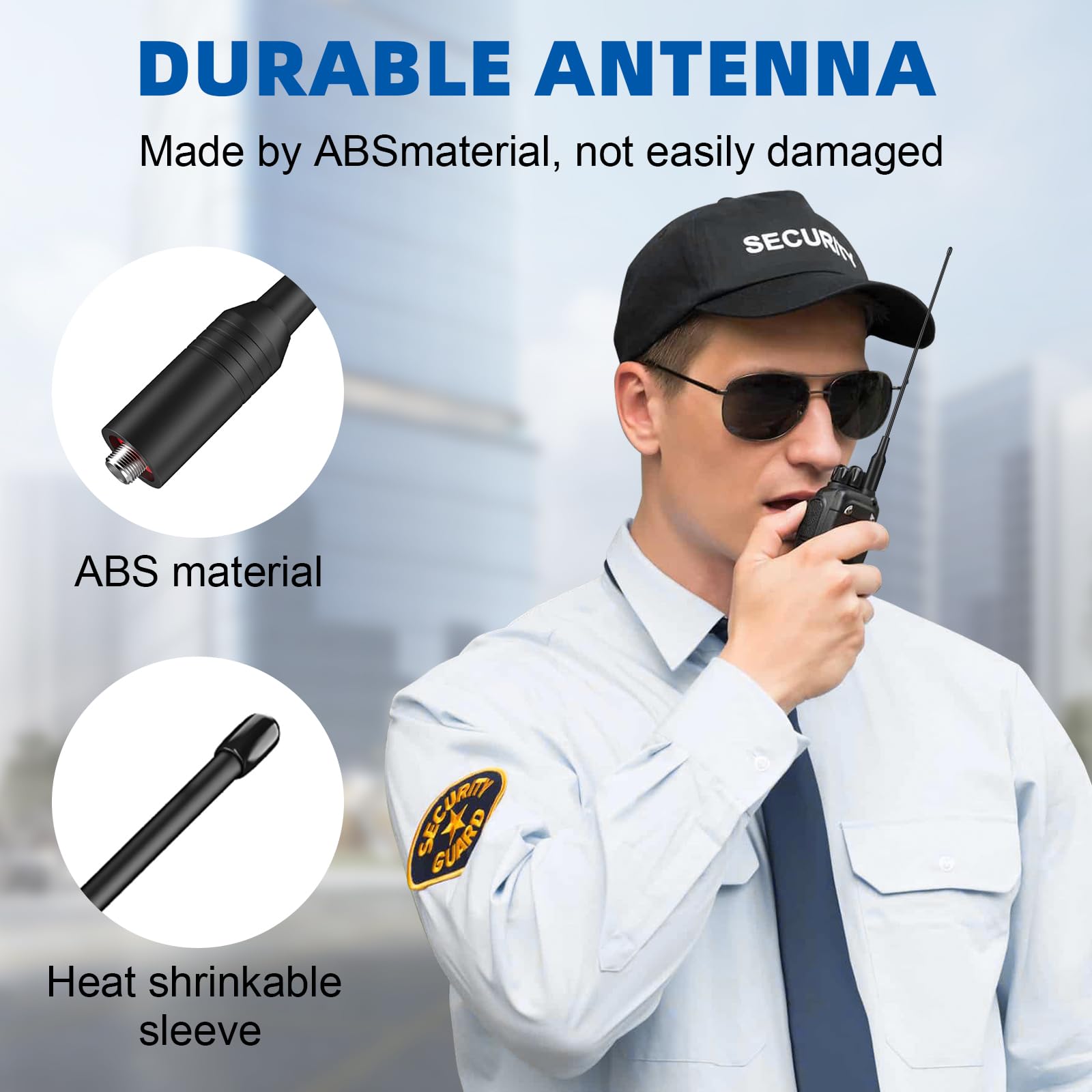 - Pārnēsājama un elastīga antena; 38,5 cm garš un sver tikai 27 g, ērti pārnēsājams; Izgatavots no ABS materiāla un termiski sarūkošas uzmavas, kas padara antenu izturīgāku un spēcīgāku