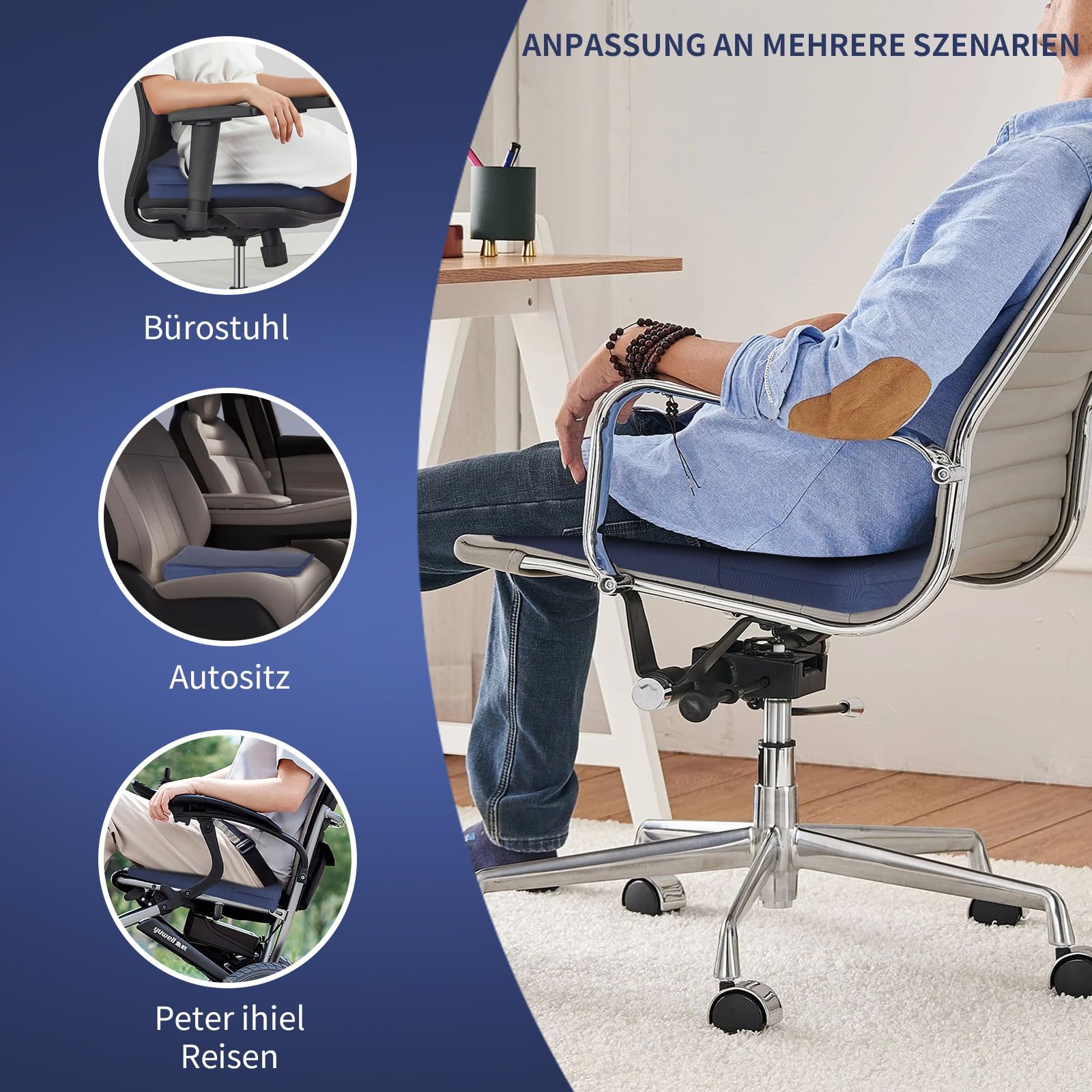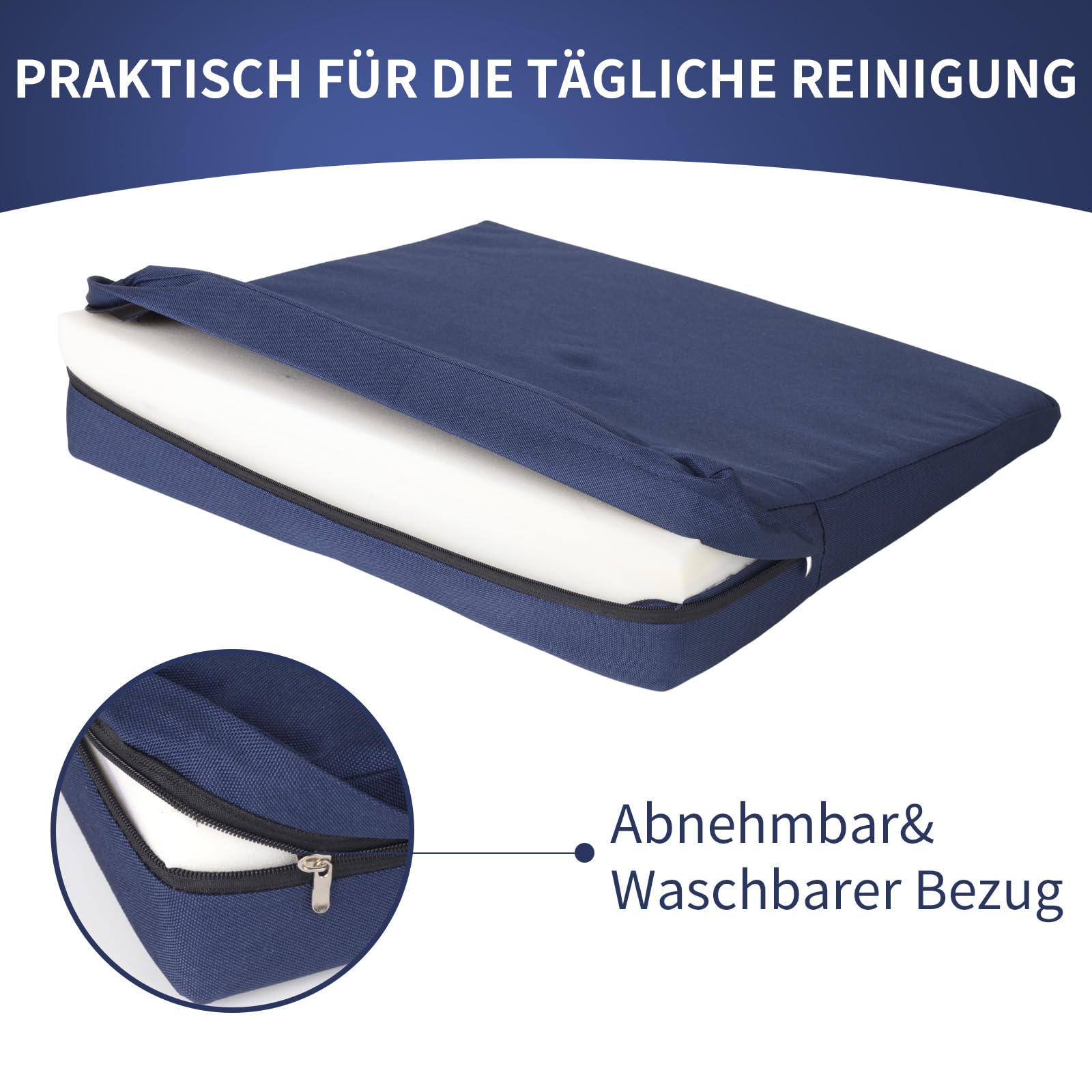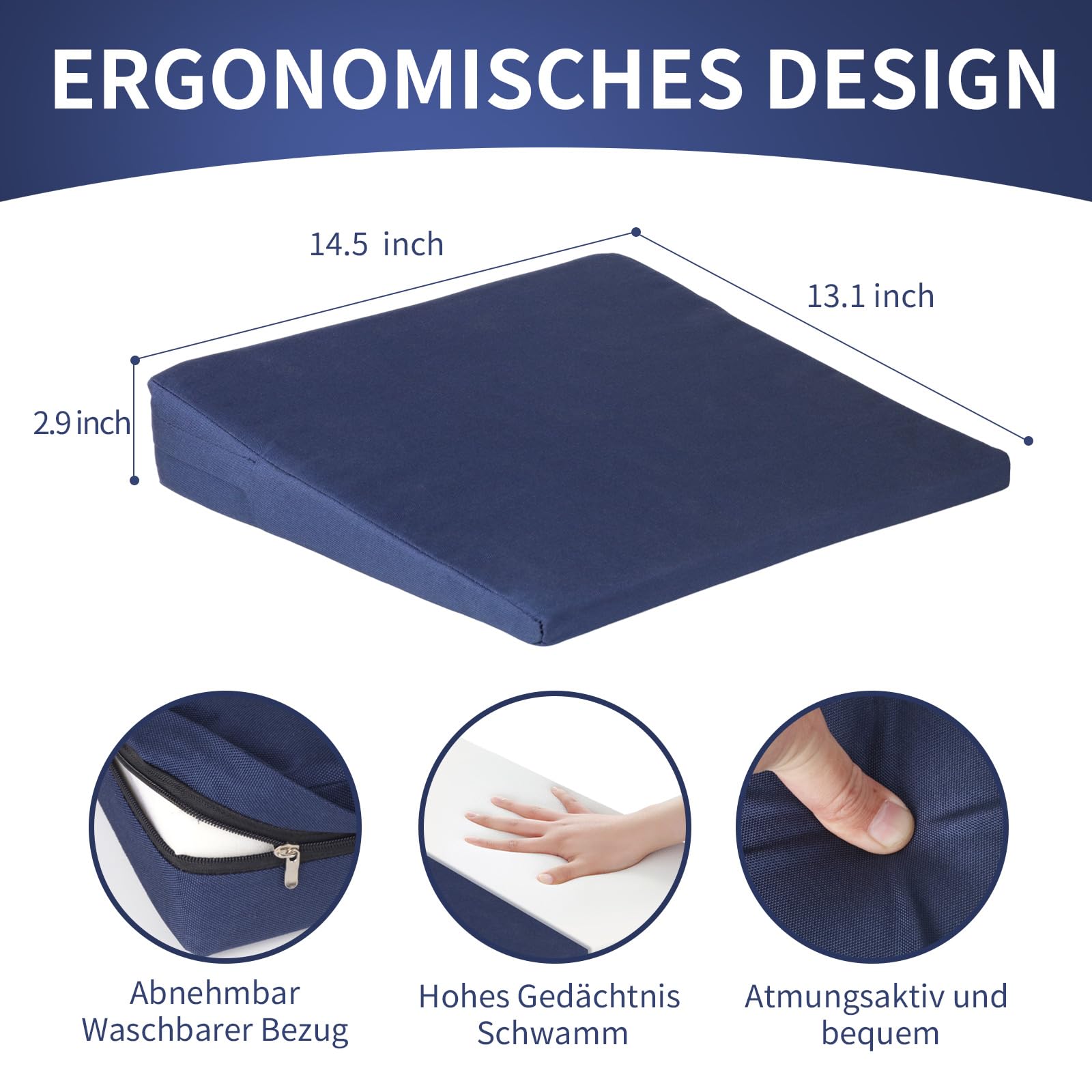 Ķīļveida spilvens - ķīļveida krēsla spilvens - ķīļveida automašīnas spilvens - sēdekļa spilvens - sēdekļa ķīļveida spilvens - ar noņemamu pārvalku, poliesters, krāsa: tumši zila