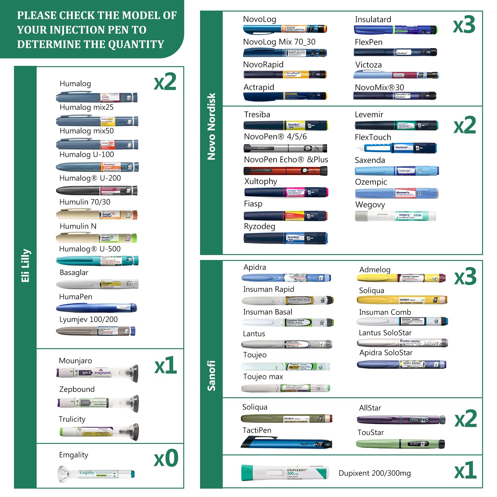 - 【Liela ietilpība un viegls svars】Pārnēsājams mazs insulīna pildspalvu dzesētājs ceļošanai ar iekšējo telpu, ko var aprīkot ar 3 insulīna pildspalvām/adatām ar 15 mm diametru. Tas pats attiecas uz Humira/Ozempic/Tacticy/Lantus/Saxena/Victoza/Juvederm u. c. Lūdzu, pārbaudiet pieejamību vai sazinieties ar KEKHEALTH tehniskā atbalsta komandu.