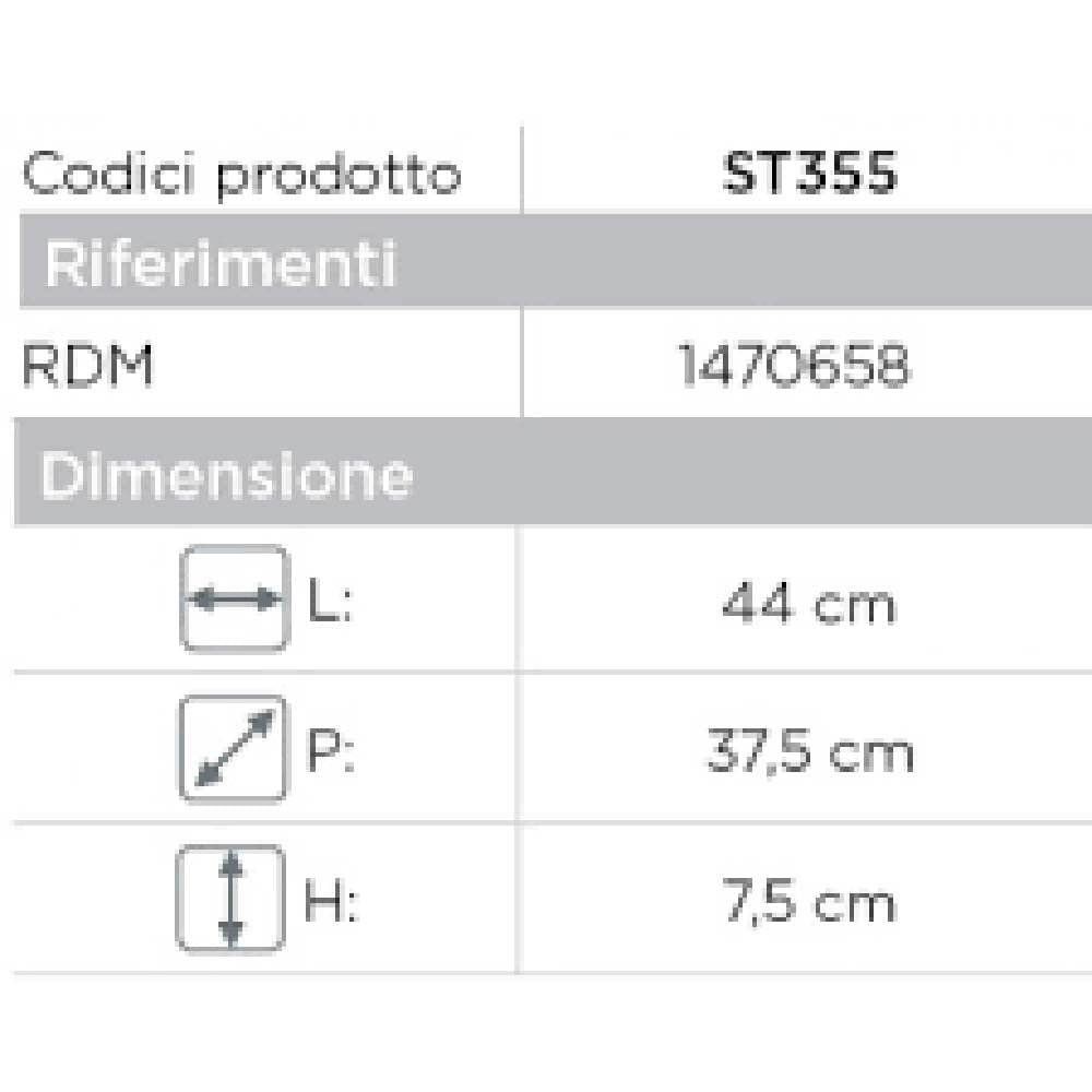 - Izmēri: garums 44 x platums 37,5 x augstums 7,5 cm
