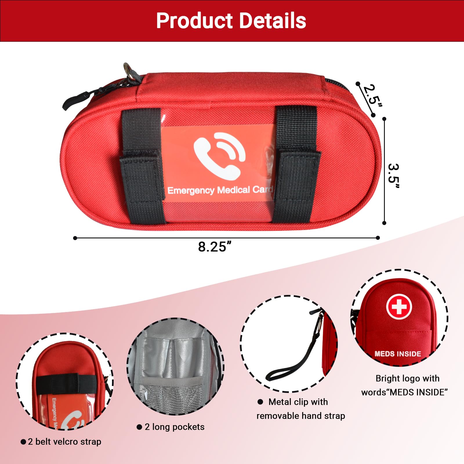 - Daudzpusīgs visām vajadzībām: Neatkarīgi no tā, vai jums ir alerģijas, astma vai diabēts, šī izolētā medikamentu soma nodrošina, ka jūsu medikamenti vienmēr ir pa rokai. Kompakts un uzmanību piesaistošs, lai ārkārtas situācijās būtu ātri pamanāms, tas ir neaizstājams aksesuārs darbā, ceļojumos vai ikdienas dzīvē.