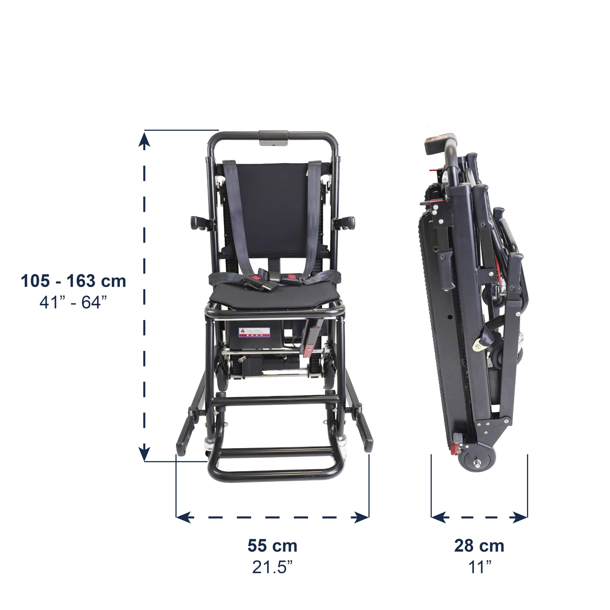 - FUNKCIONĀLS UN PĀRNĒSĀJAMS: Šis kāpņu ratiņkrēsls ir paredzēts cilvēku drošai un ērtai pārvadāšanai pa kāpnēm augšup un lejup. Tā salokāmais dizains ļauj to ērti uzglabāt un transportēt bez jebkādām problēmām. Izmēri atlocītā veidā: 105–163 x 55 x 80 cm; Izmēri salocītā veidā: 105 x 55 x 28 cm. Svars: 30 kg.