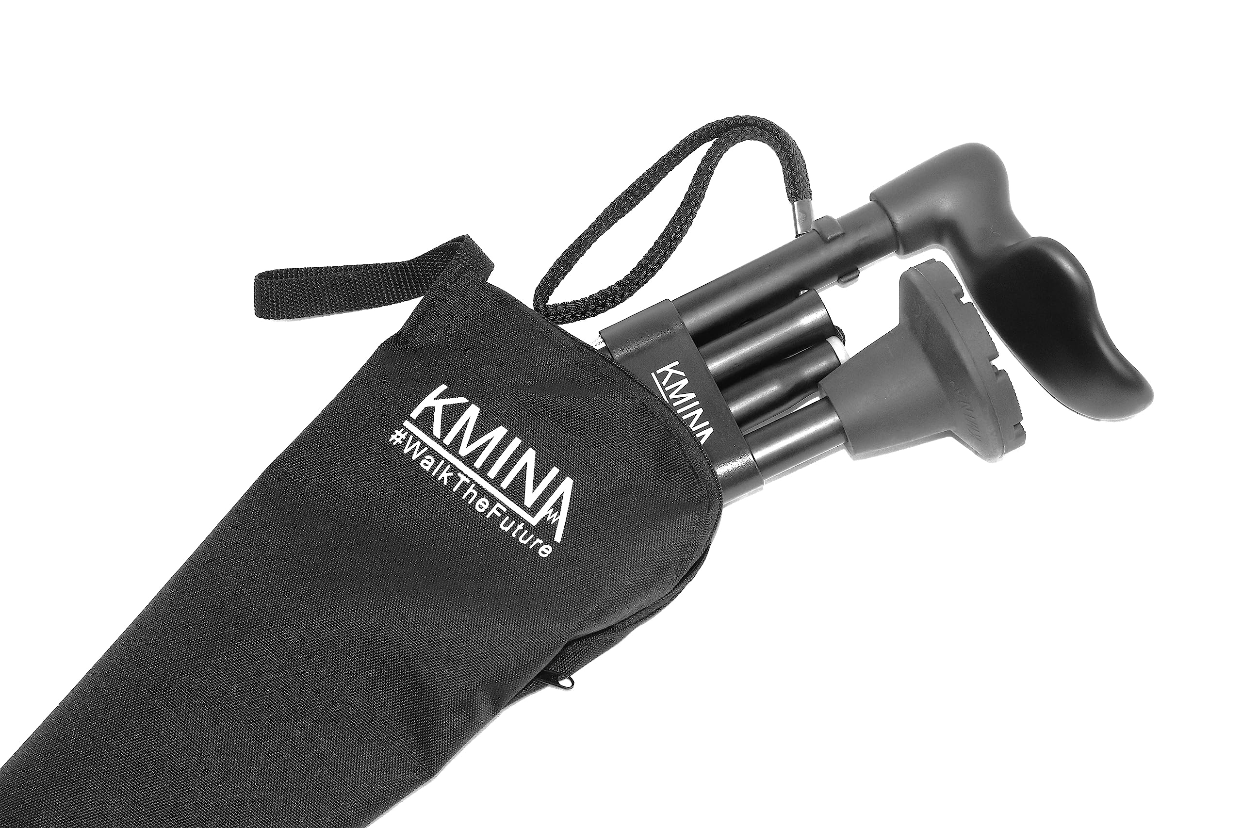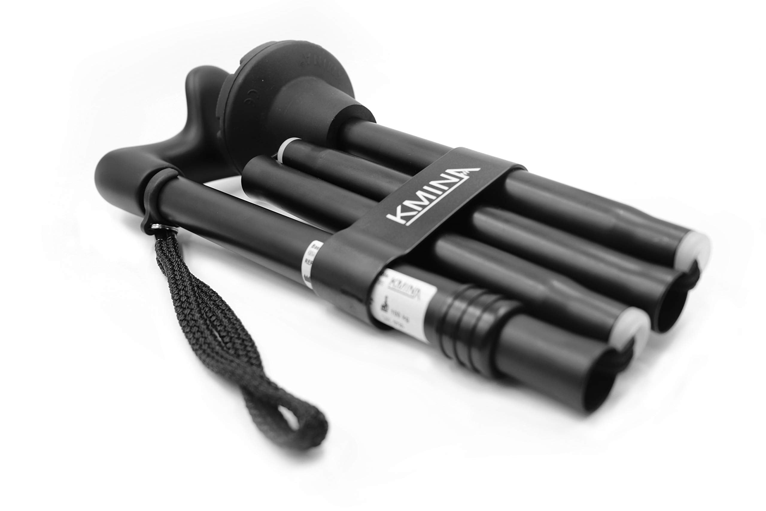 KMINA - Salokāms spieķis ar ergonomisku rokturi, Labajā pusē, Regulējams augstums, Senioriem, Vīriešiem, Sievietēm, Melns - Ražots Eiropā