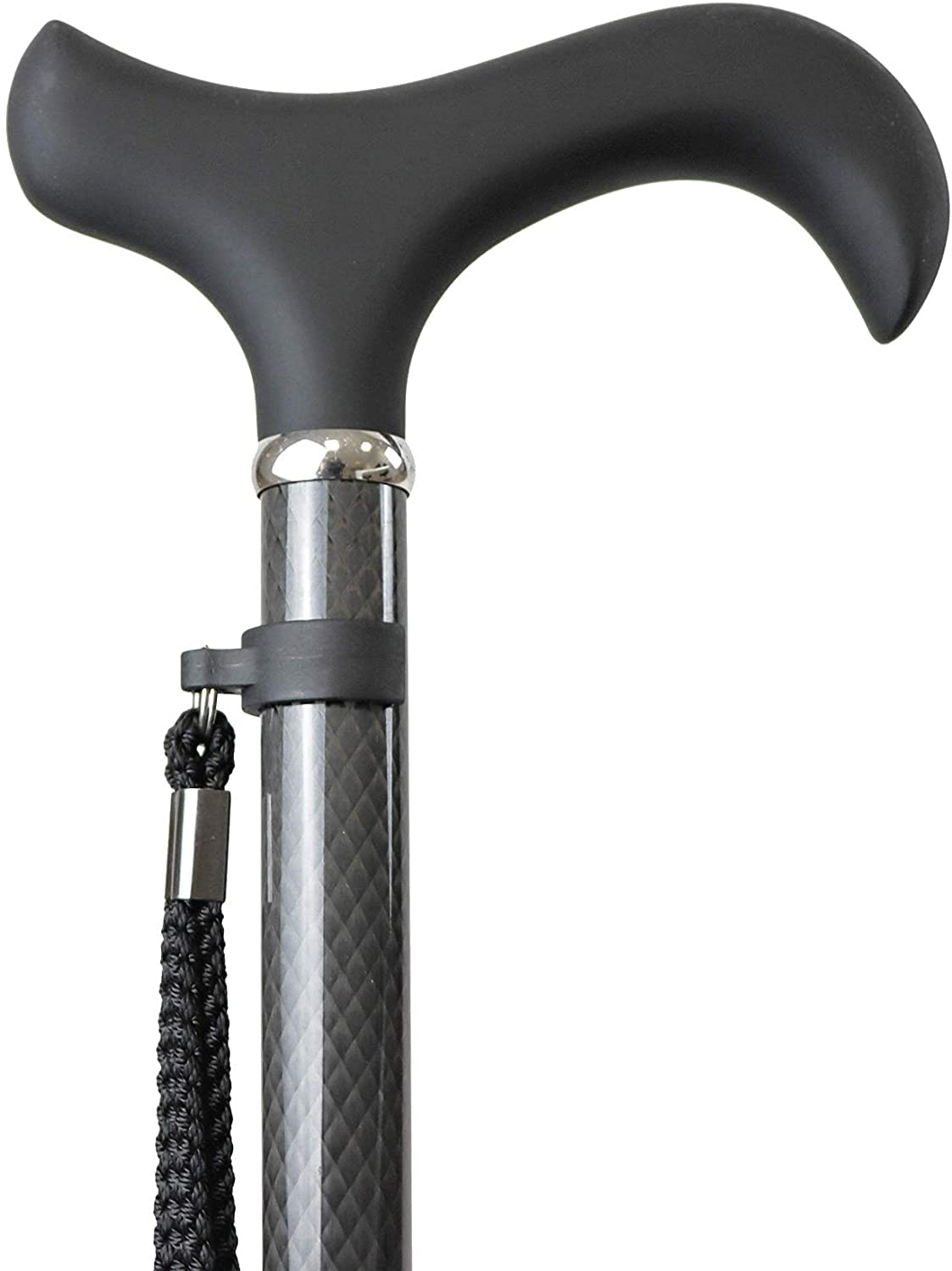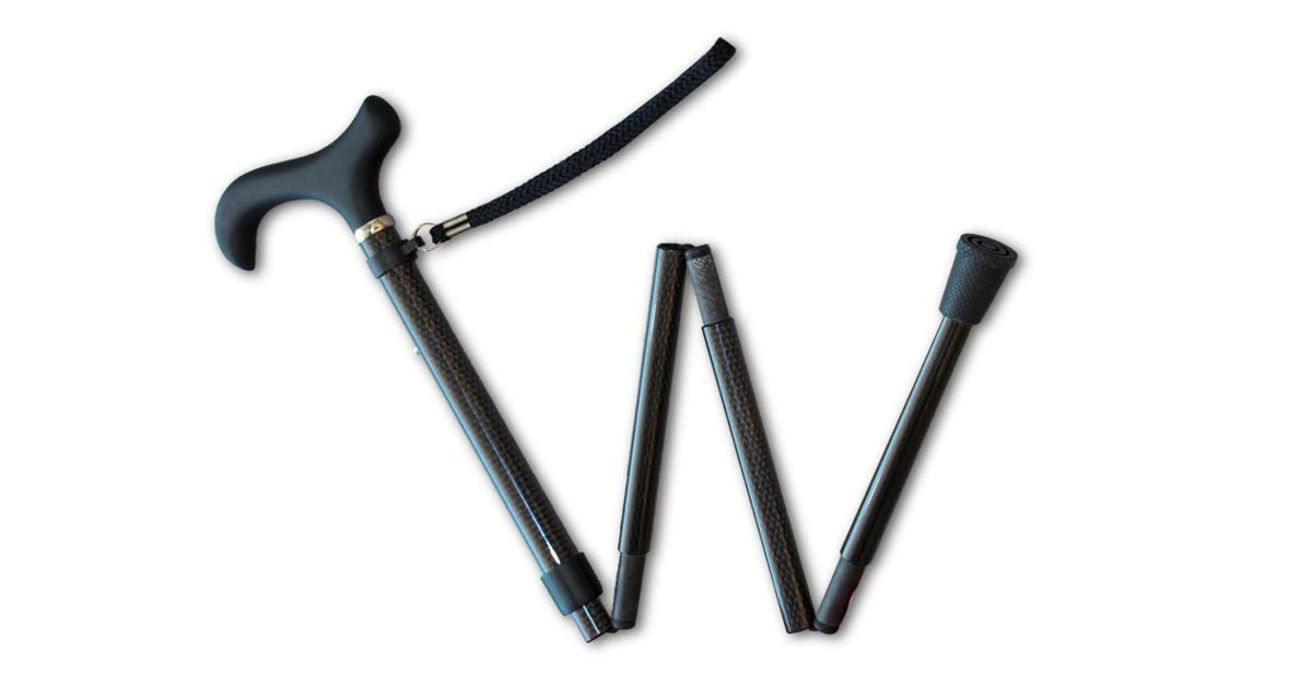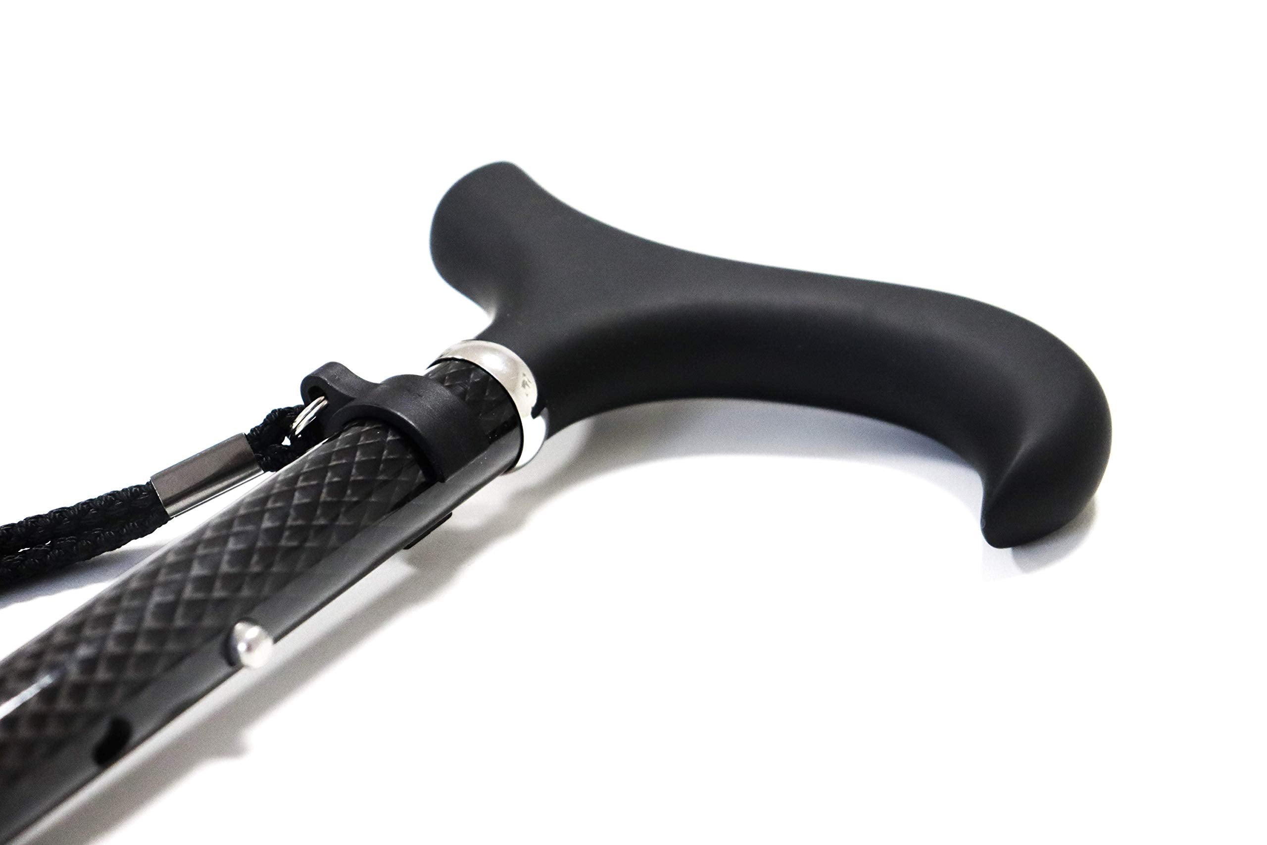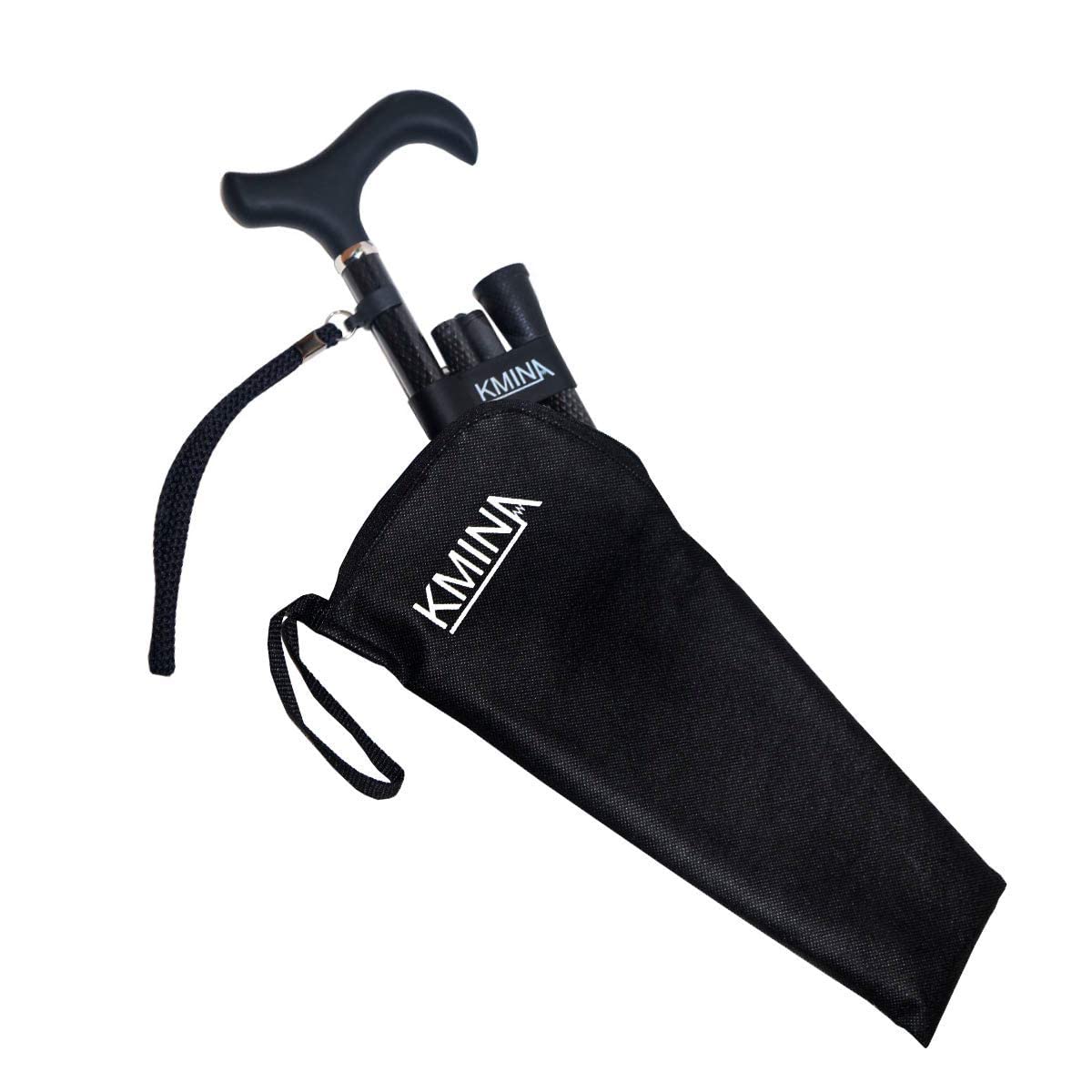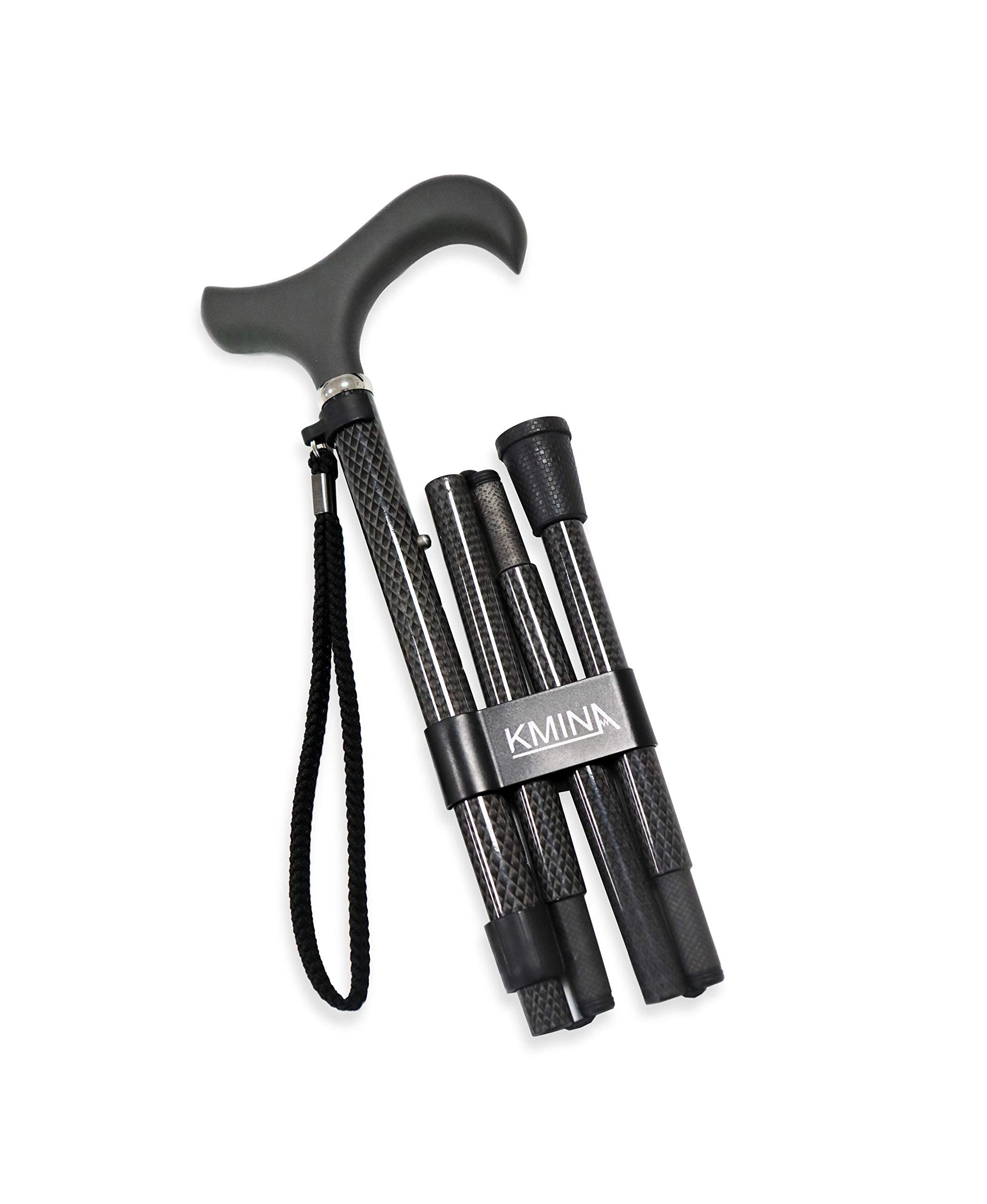 KMINA PRO - Saliekams nūjas nūjiņš no oglekļa šķiedras, Sieviešu augstuma regulējams, Vīriešu elegants, Melns nūjiņš, Viegls, Saliekams, Oglekļa šķiedra