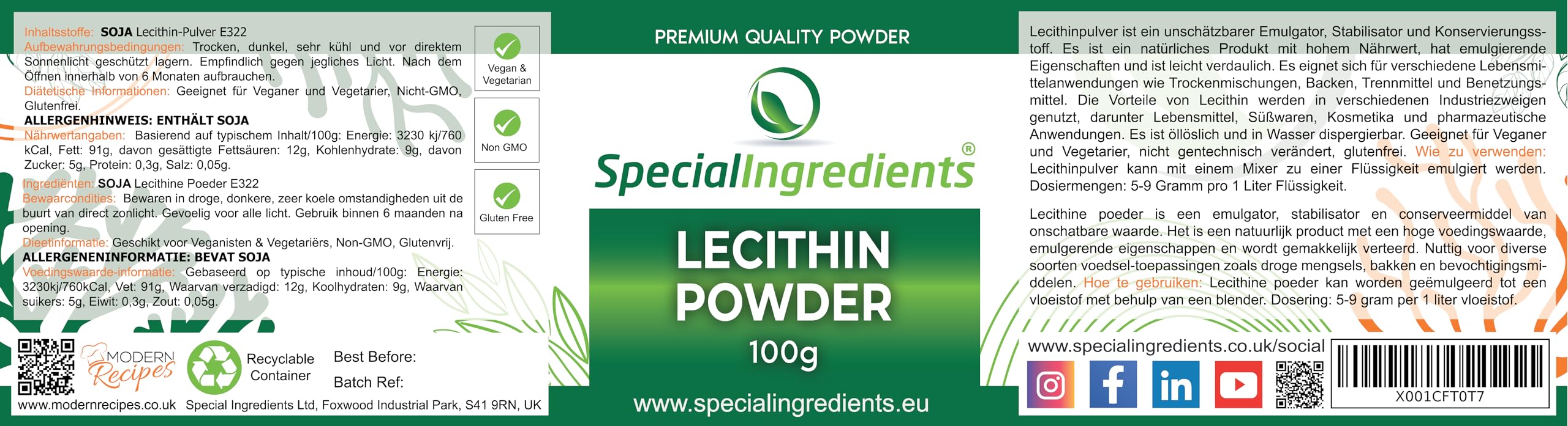LECITĪNA PULVERIS 100g AUGSTĀKĀS KVALITĀTES BEZ ĢMO (ETIKETES UN INSTRUKCIJAS VĀCU VALODĀ)