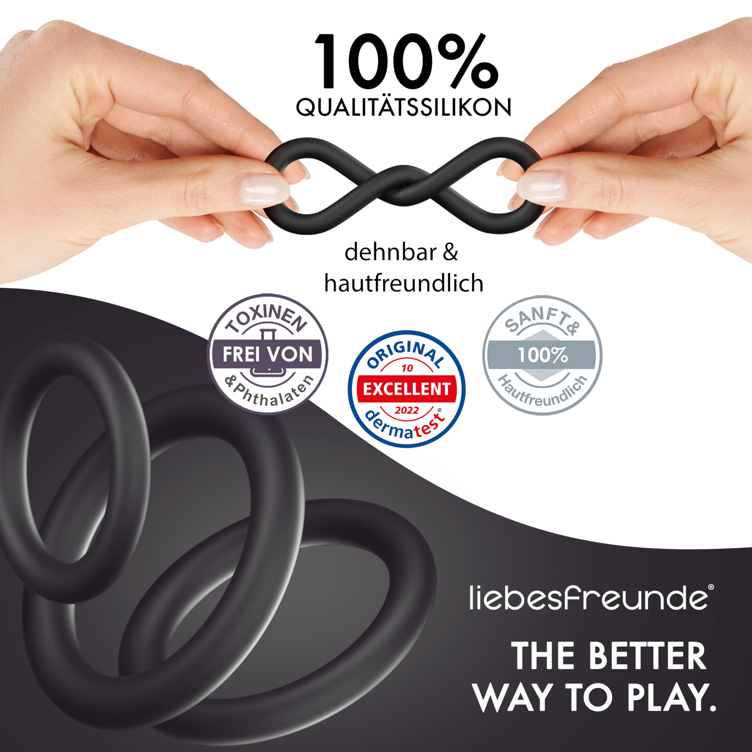 • ✅ DROŠS UN GARANTĒTS - Uzticieties augstākajai kvalitātei un drošībai! Gredzeni ir dermatoloģiski pārbaudīti un nesatur ftalātus. Palutiniet sevi tikai ar pašu labāko – ar Liebesfreunde luksusa dzimumlocekļa gredzeniem!