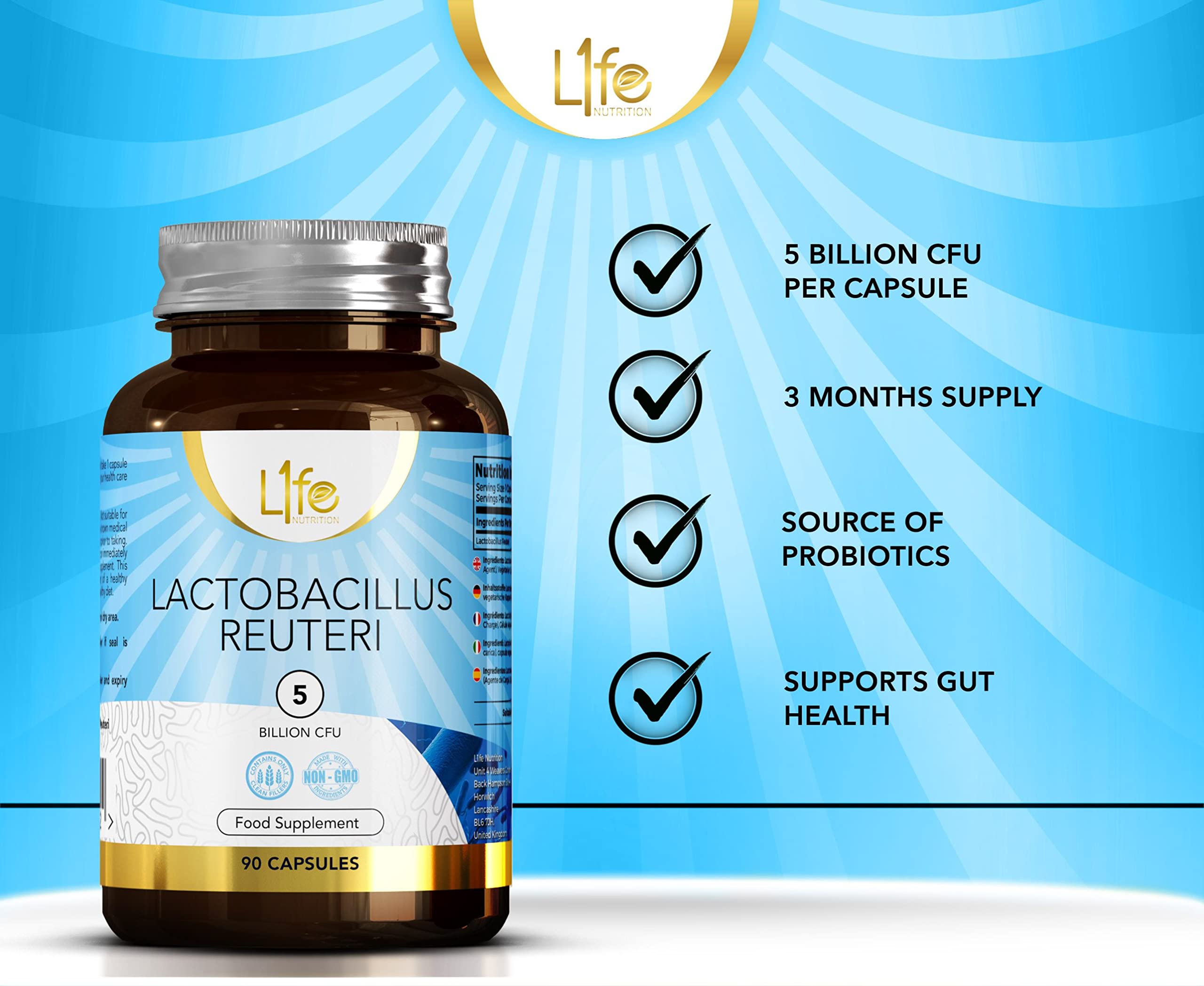 LN Lactobacillus Reuteri | 90 probiotisko Lactobacillus Reuteri kapsulas – 5 miljardi CBU L-Reuteri vienā porcijā | Augstas devas L-reiteri uztura bagātinātājs | Bez ĢMO, glutēna un alergēniem