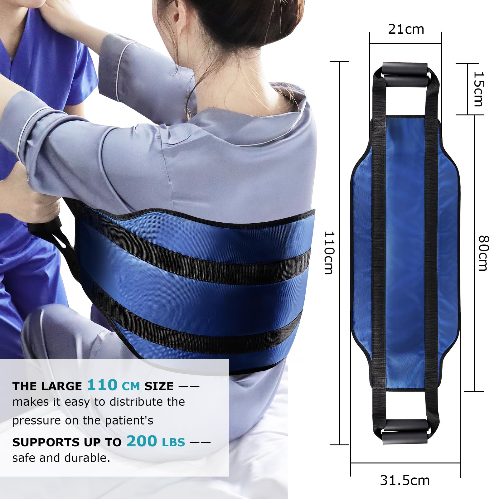 LOSCHEN 110 cm pārvietošanas lente, pacientu pārvietošanas lente, gultas pārvietošanas palags invalīdiem, vecāka gadagājuma cilvēkiem, geriatrijas cilvēkiem, ievainotajiem, droša pārvietošana no automašīnas, ratiņkrēsla, gultas (zila, īpaši plata)