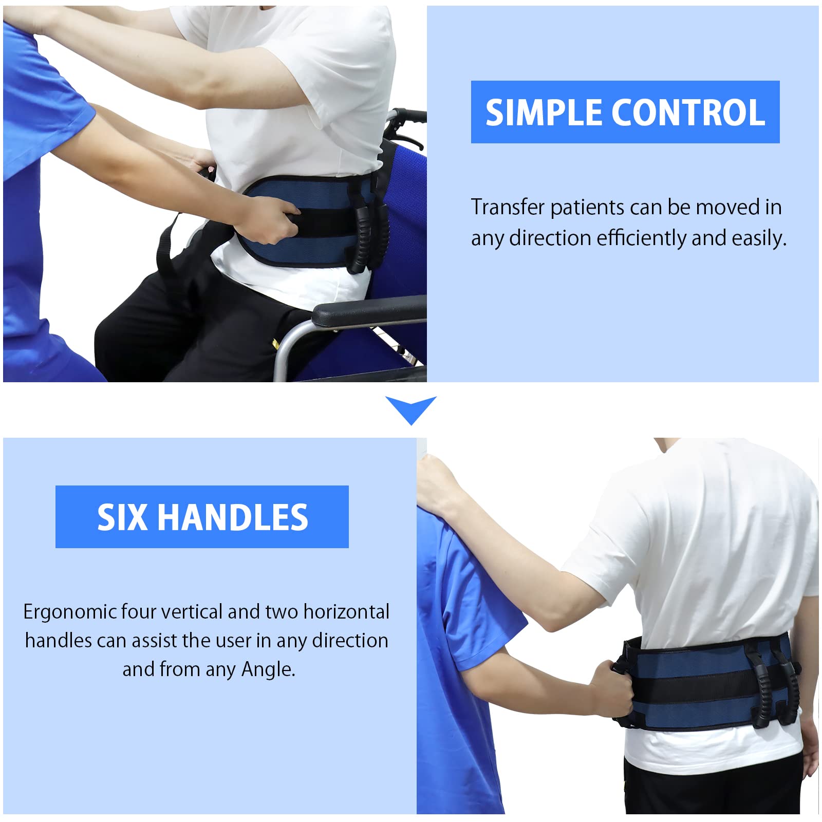 LOSCHEN pārvietošanas gaitas josta, pastaigu josta ar 6 rokturiem, Cares Belt pārvietošanas palīglīdzeklis mobilitātes atbalstam vecāka gadagājuma cilvēkiem, staigāšanas drošības palīdzības ierīce (tumši zila)