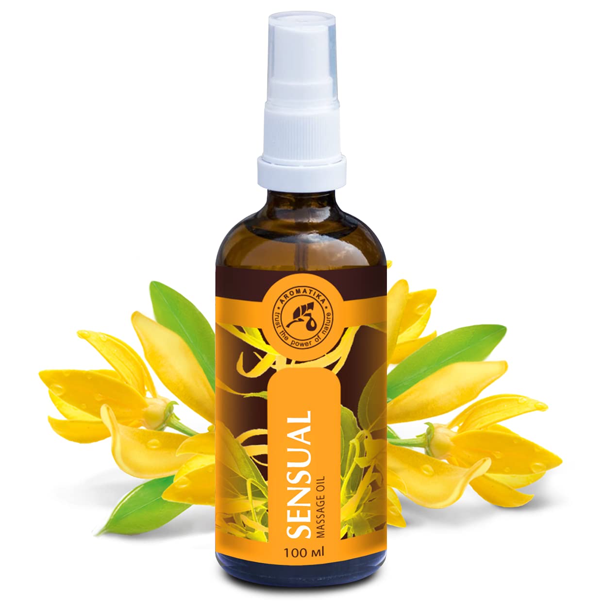 Masāžas eļļa 100ml - Dabīga ilang-ilang eļļa un jojobas eļļa - Brīnišķīgs aromāts - Afrodiziaka masāžas eļļa - Stikla pudele - Dabīgā kosmētika - Masāžas eļļas