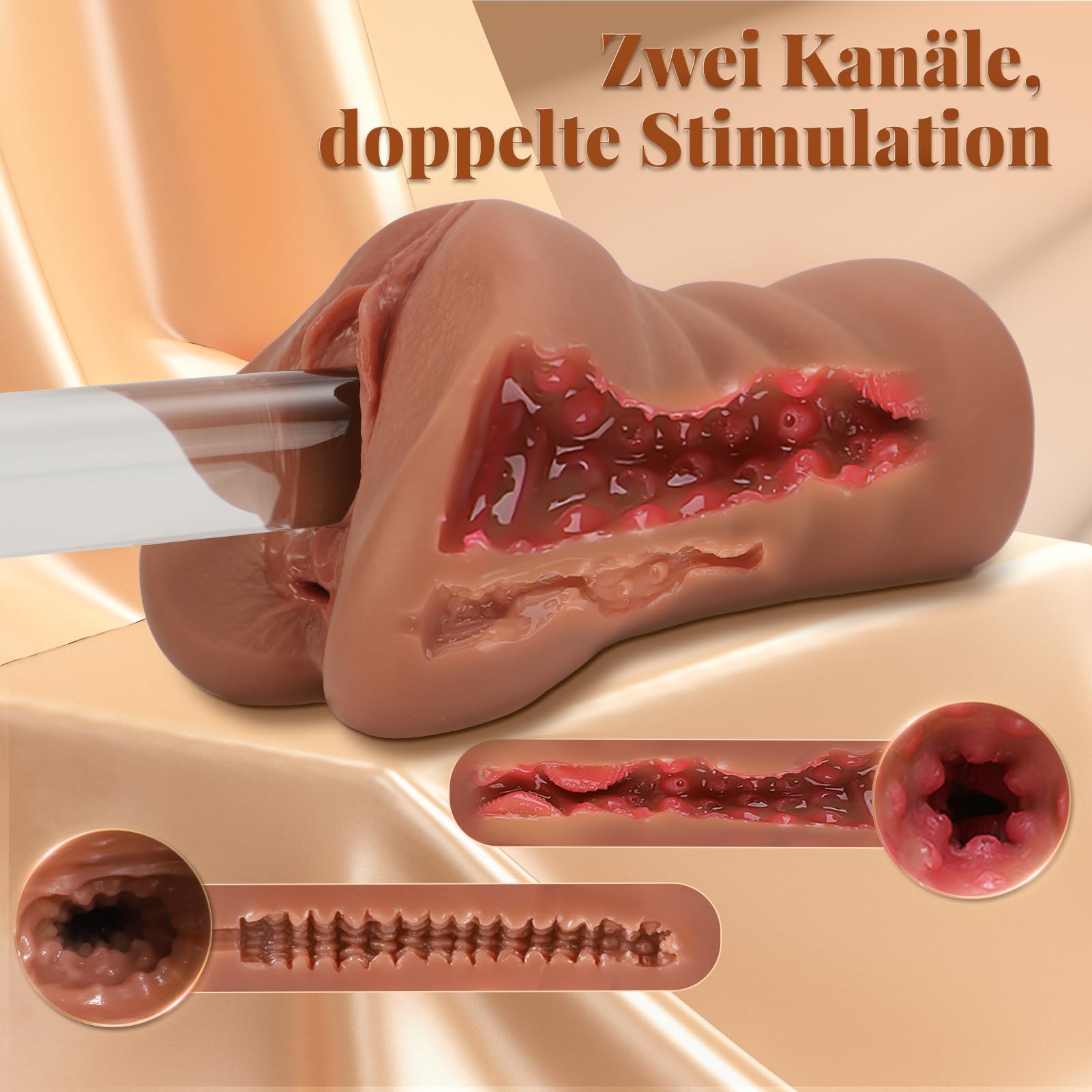 - Pārnēsājama kabatas vagīna reālistiski liela: dzimumlocekļa masturbatora platums ir 10 cm, garums 16,5 cm, augstums 8,5 cm un svars gandrīz 650 grami. Ievietojamā mākslīgā maksts tuneļa garums ir 13 cm. Ievietojamā anālā tuneļa garums ir 12,5 cm. Šī vagīna nav tik apjomīga kā tradicionālais elektriskais masturbators, taču vibratora papildu 10 frekvenču vibrācija ir tikpat spēcīga kā elektriskajiem krūzīšu masturbatoriem.