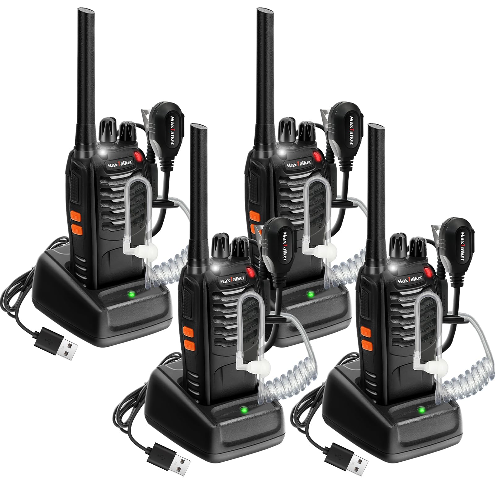 MaxTalker MT-8S uzlādējama rācija pieaugušajiem un bērniem, bezlicencētas PMR446 radioaparāti, 16 kanālu radio uztveršana, ar austiņām un 1500 mAh litija jonu akumulatoru ar C tipa savienotāju, 4 gabalu komplekts