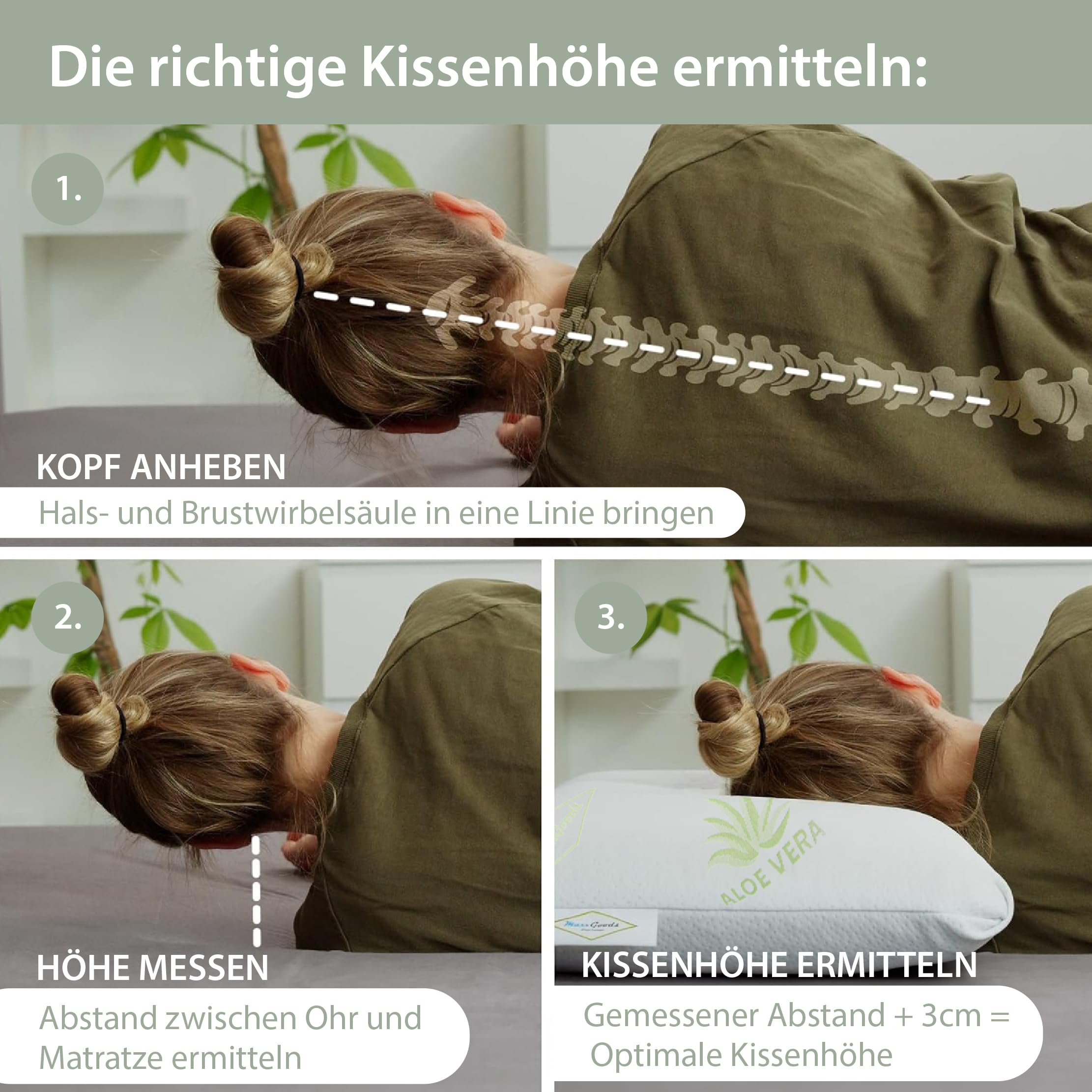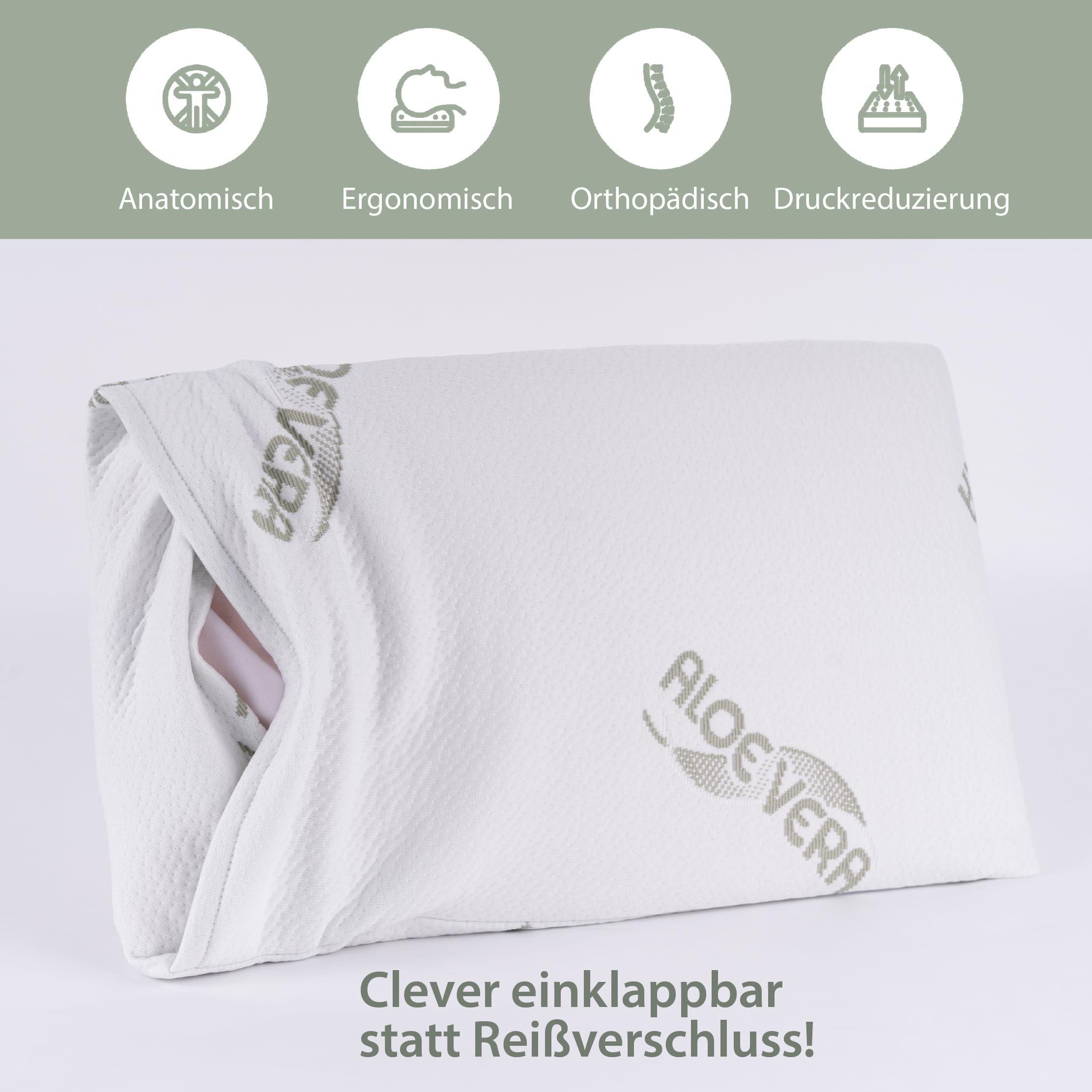 MaxxGoods ortopēdisks plakans spilvens, kas izgatavots no viskozā gēla putām + iekļauts. Kokvilnas pārvalks + alvejas aizsargapvalks - kakla atbalsta spilvens kakla mugurkaula atbalstam - spilvens zīdaiņiem un bērniem (50x30x5cm)