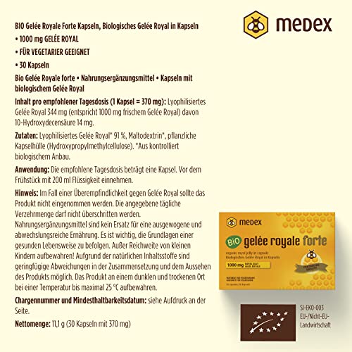 - 🐝 AUGSTA PEĻŅU PERŠU PIENA DEVA LIOFILIZĒTĀ (SAUSĀ) VEIDĀ - KAPSULA - viena dienas deva nodrošina 1000 mg peru pieniņa ar 14 mg HDA vienā kapsulā. Lieliski piemērots pieaugušajiem ar novājinātu imūnsistēmu un augstu fiziskās un garīgās slodzes līmeni.