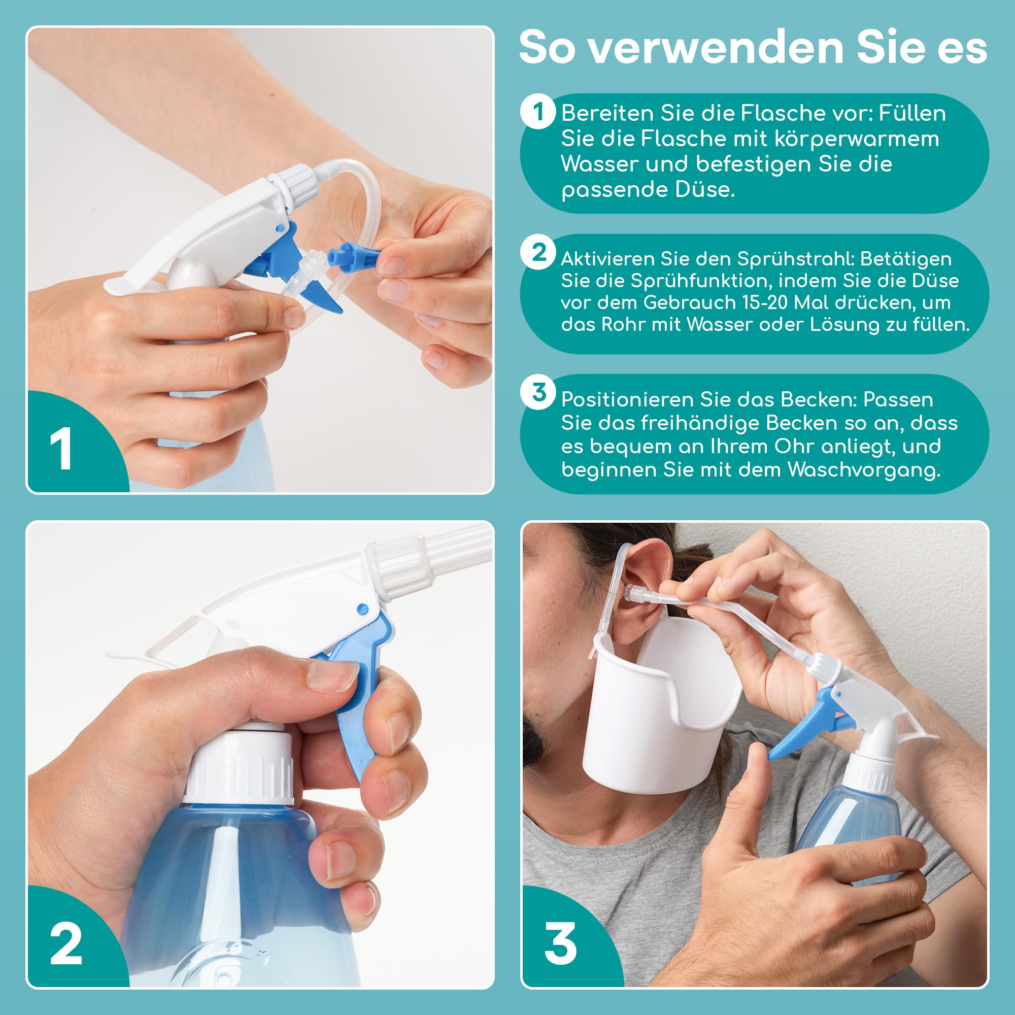 - Videi draudzīgs ausu skalošanas komplekts — atbrīvojieties no vecajiem vienreizlietojamajiem vates kociņām un izmantojiet šo atkārtoti lietojamo ausu sēra noņēmēju, lai izskalotu ausis. Sargājiet savas ausis un vidi! Izmantojot videi draudzīgo ūdens spēku, šī ausu skalošanas pudeļu sistēma samazina jūsu atkarību no vienreizlietojamiem ausu tīrīšanas līdzekļiem, kas parasti kaitē videi.