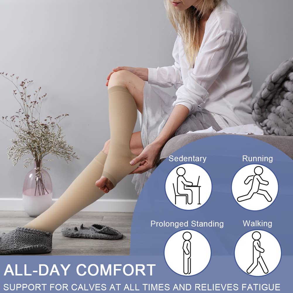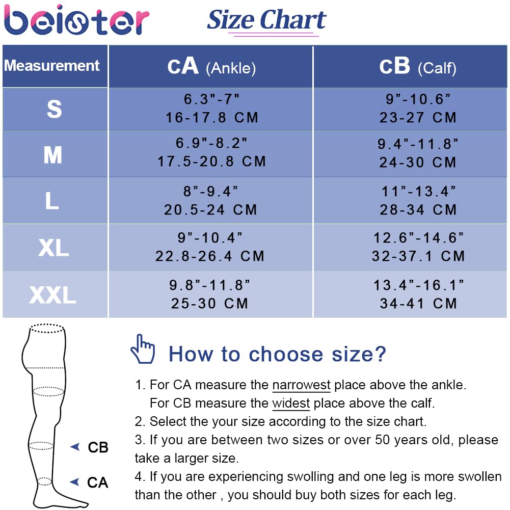 - 🌸TERAPEITISKA IEDARBĪBA: Beister piedāvā labi izstrādātas kompresijas atbalsta zeķes, kas nodrošina pakāpenisku kompresiju no potītes līdz ikru augšdaļai. Terapeitiskās kompresijas zeķes, kas veicina asinsriti, palīdz mazināt nogurušas, sāpošas un nespēcīgas kājas. Ideāli piemērots varikozu vēnu un zirnekļa vēnu ārstēšanai, diabēta slimnieku atbalstam, garu lidojumu laikā un vispārēja kāju un pēdu pietūkuma vai iekaisuma gadījumā.