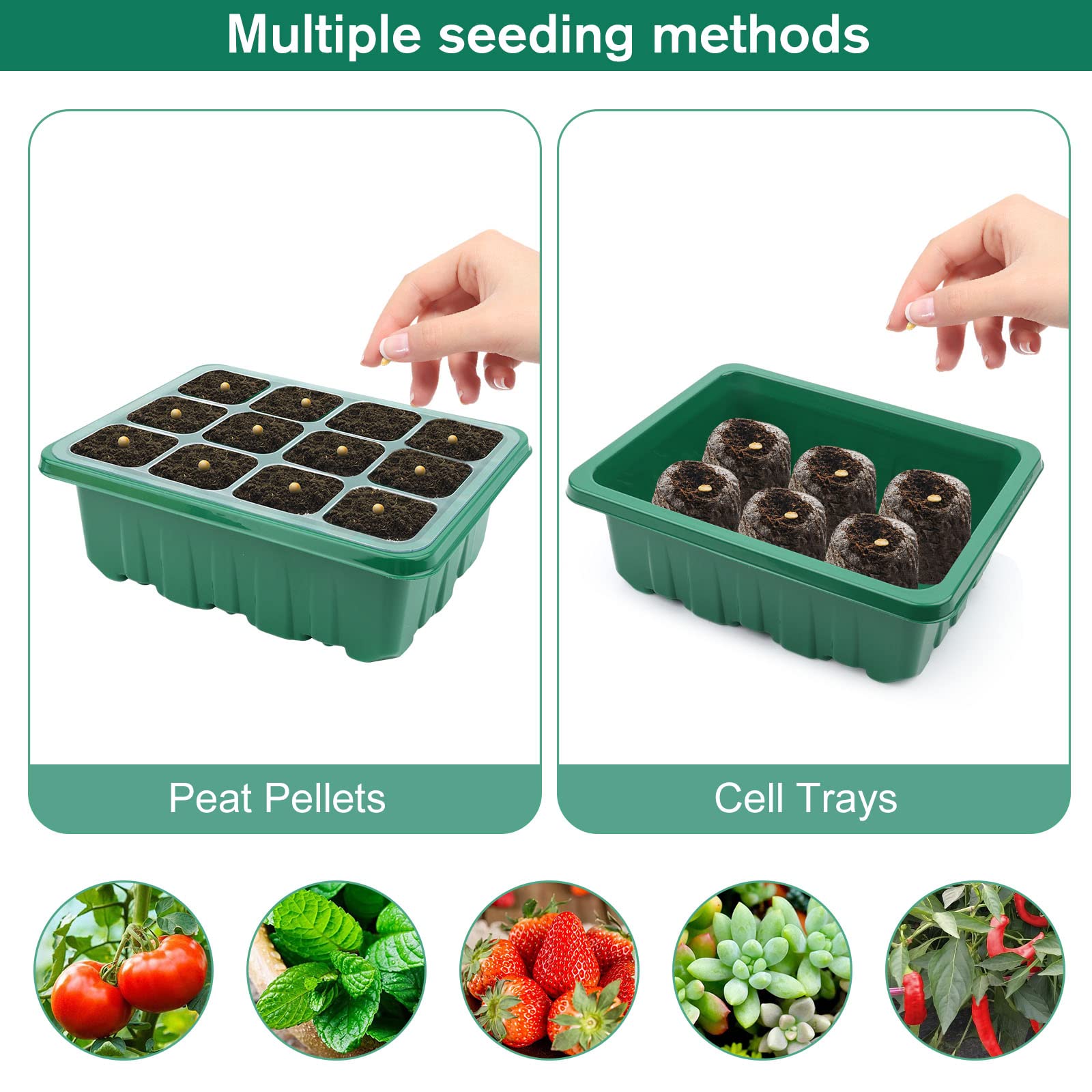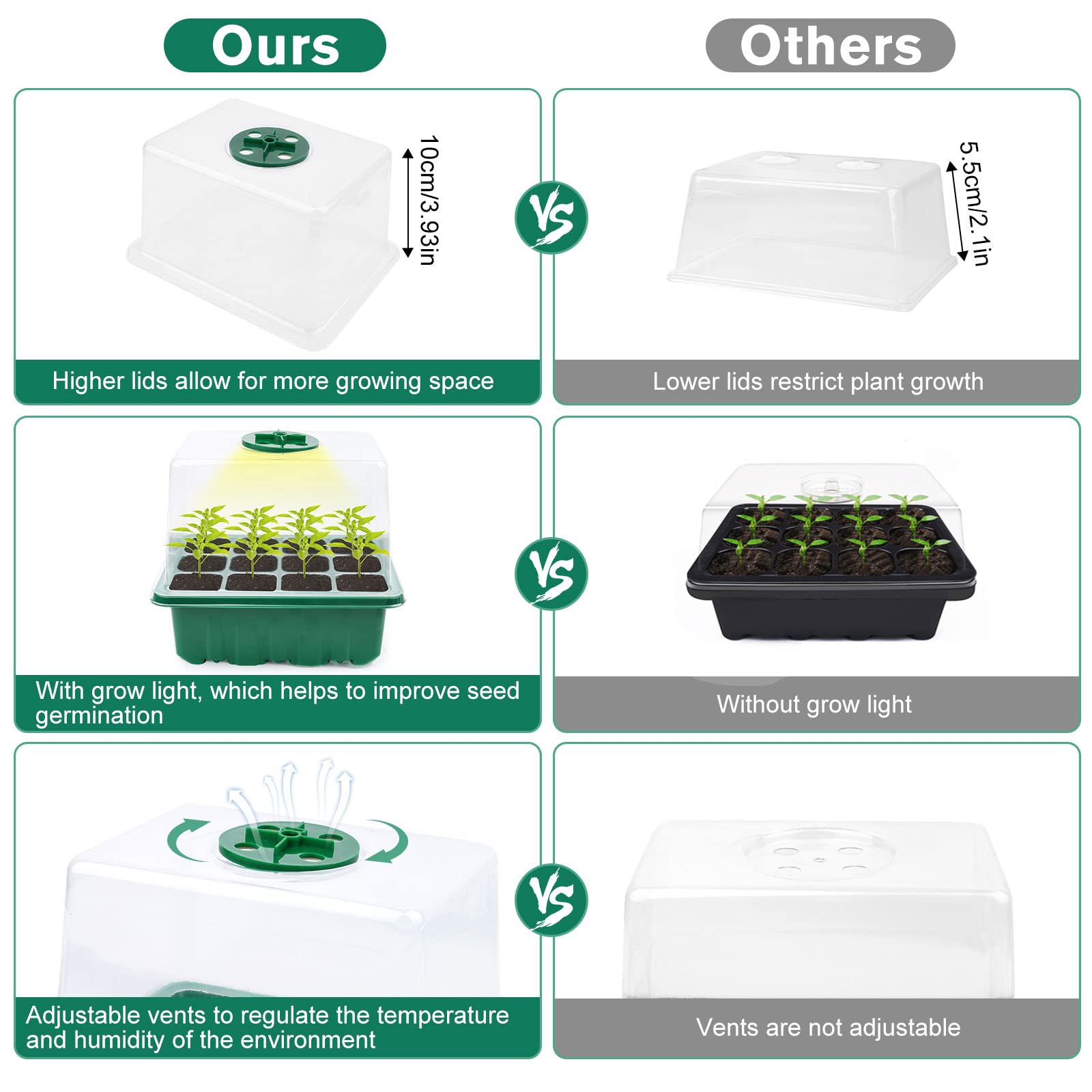 - Iekštelpu siltumnīcas pavairotājs ar gaismu: 5 daļu iekštelpu siltumnīcas pavairotāja komplekts ir izgatavots no augstas kvalitātes caurspīdīga PP materiāla, kas ir sabiezināts un pacelts, nav viegli deformējams un to var izmantot atkārtoti daudzas reizes. Katrā plastmasas augu paplātē var ievietot 12 vienības, kas atvieglo augu augšanas centralizētu pārvaldību un katra auga augšanas procesa novērošanu, ietaupot laiku un pūles.