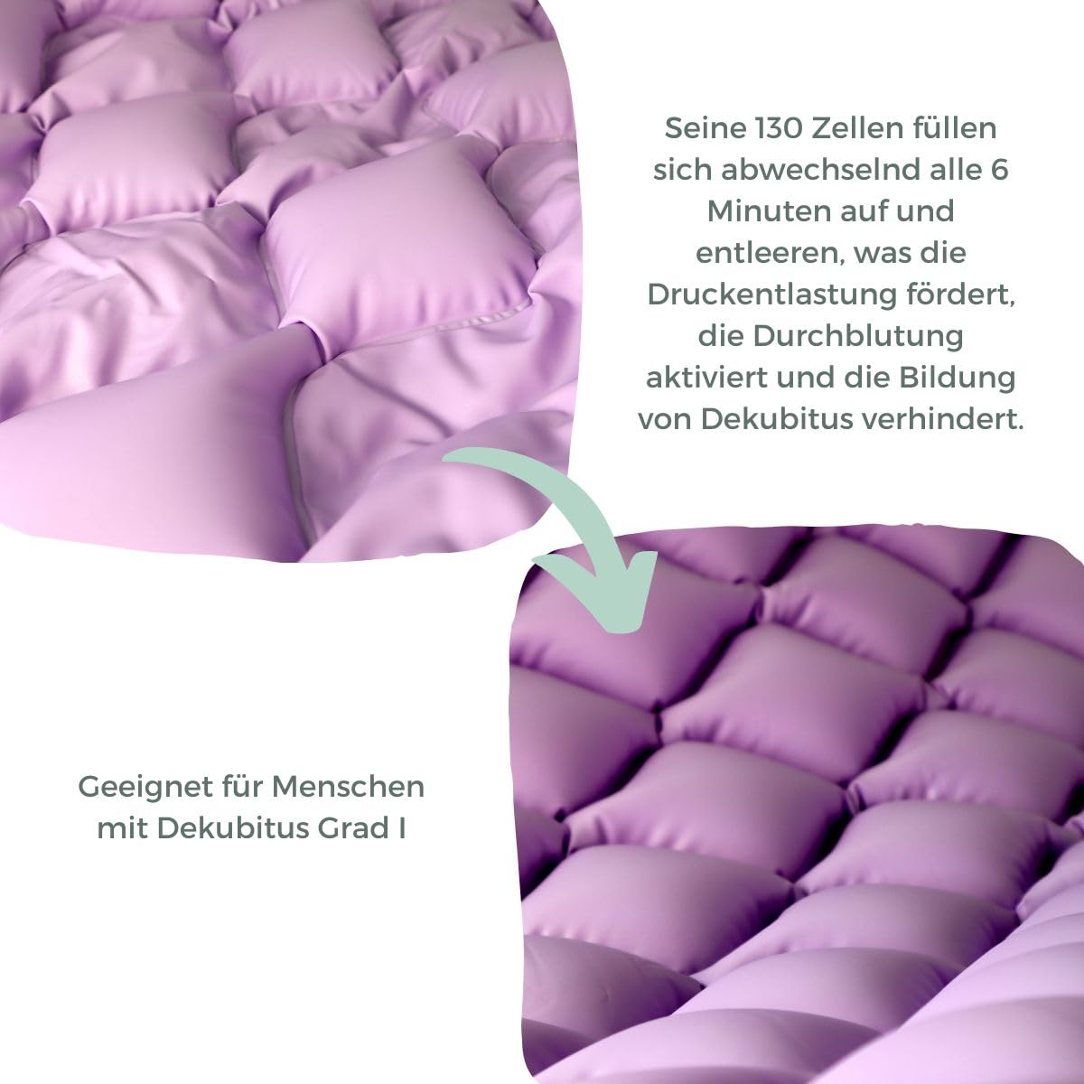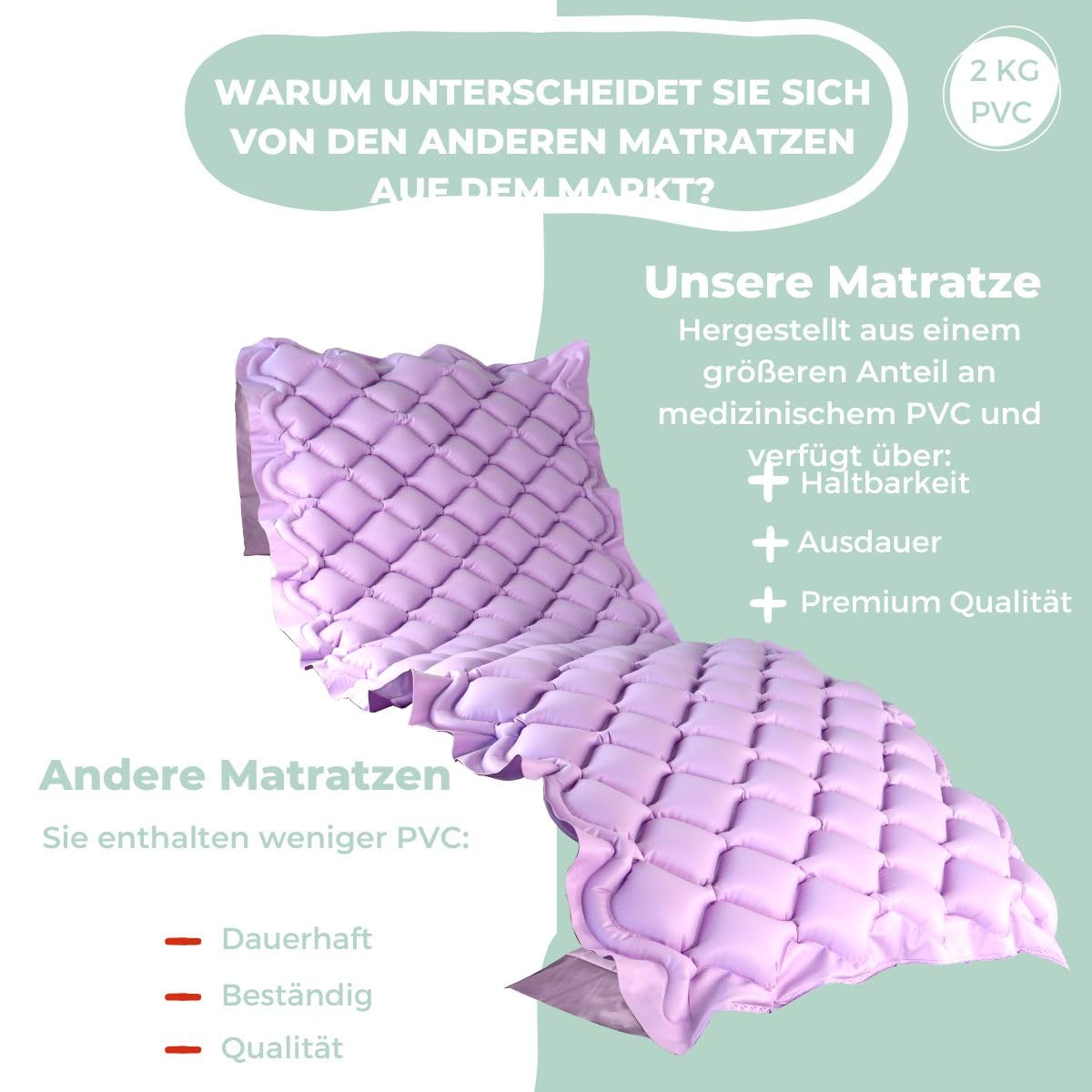 - ✔️ TERAPEITISKA IEDARBĪBA: Šis matracis palīdz mazināt pacienta sāpes un samazināt spiedienu, ko rada ilgstoša gulēšana, uzlabo asinsriti un palīdz samazināt berzi ar pašpiepūšamo gaisa matraci un spiediena čūlu rašanos, pateicoties 130 atsevišķām gaisa šūnām, kas pārmaiņus piepūšas un iztukšojas ar sešu minūšu intervālu.