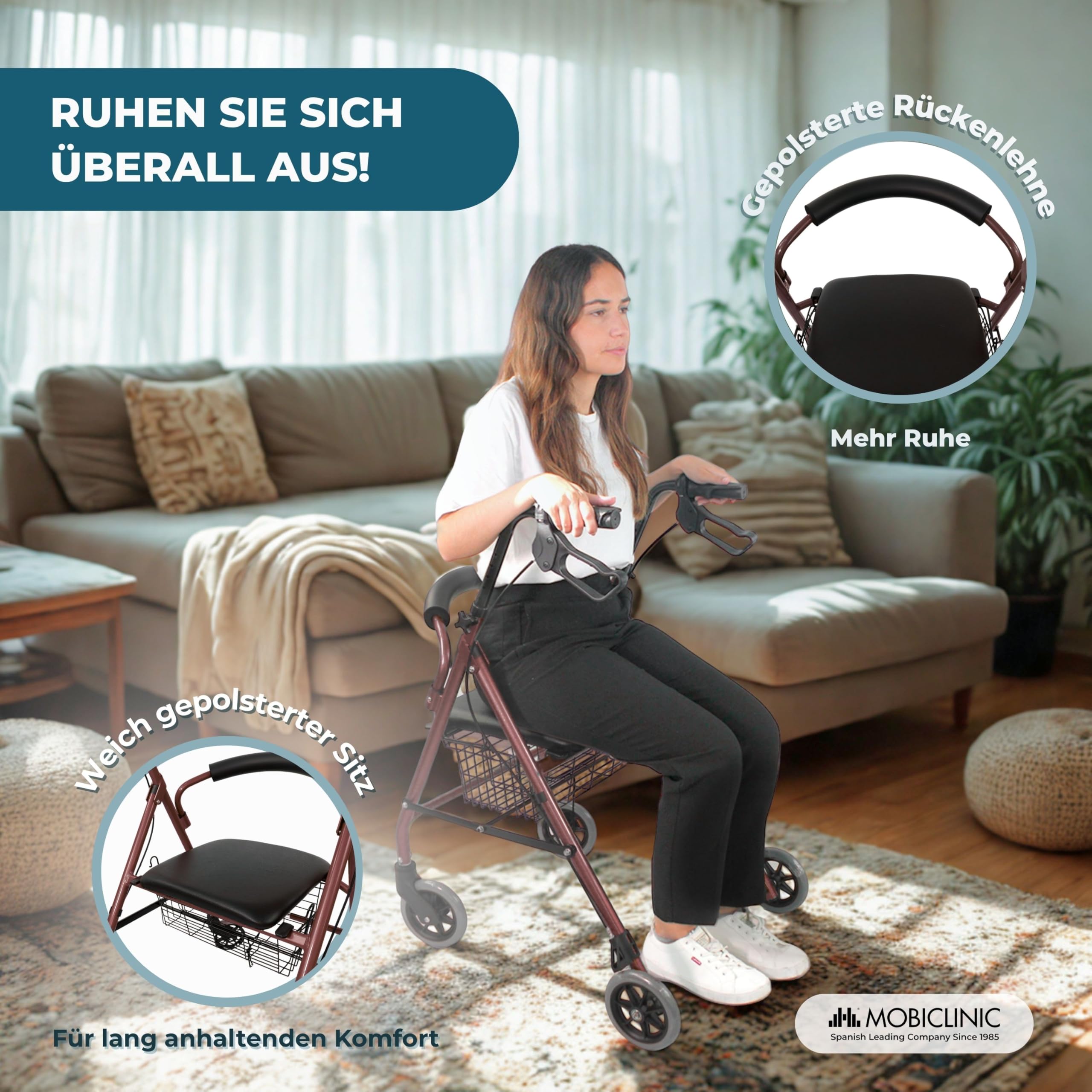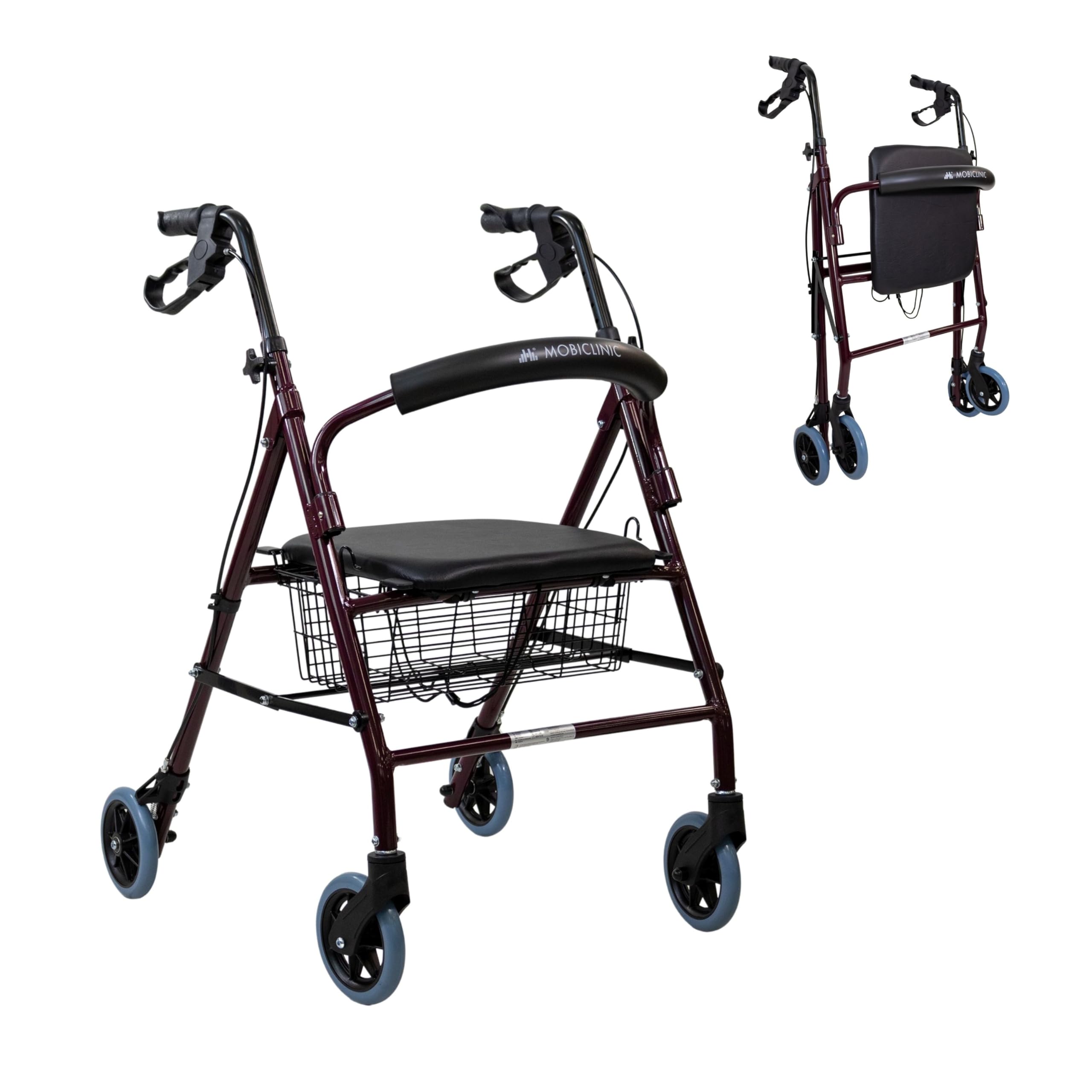 Mobiclinic®, Rollators, Escorial, Eiropas zīmols, Salokāms un viegls, Noslēdzama rokas bremze, Iešanas palīglīdzeklis, Alumīnijs, Noņemams grozs, Ar sēdekli un atzveltni, Bordo