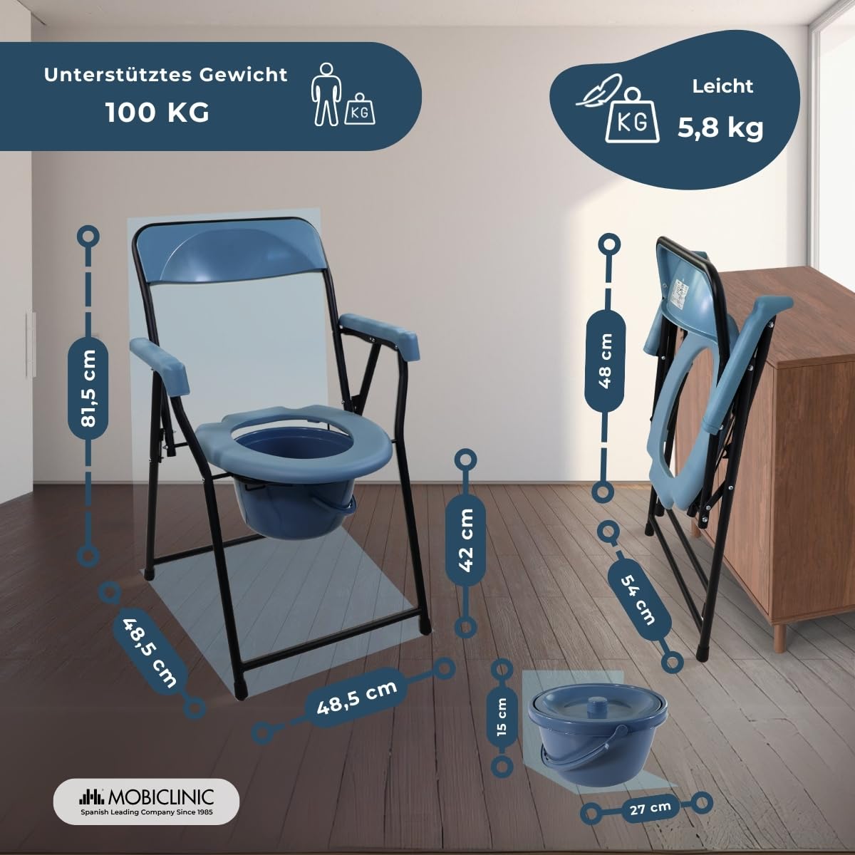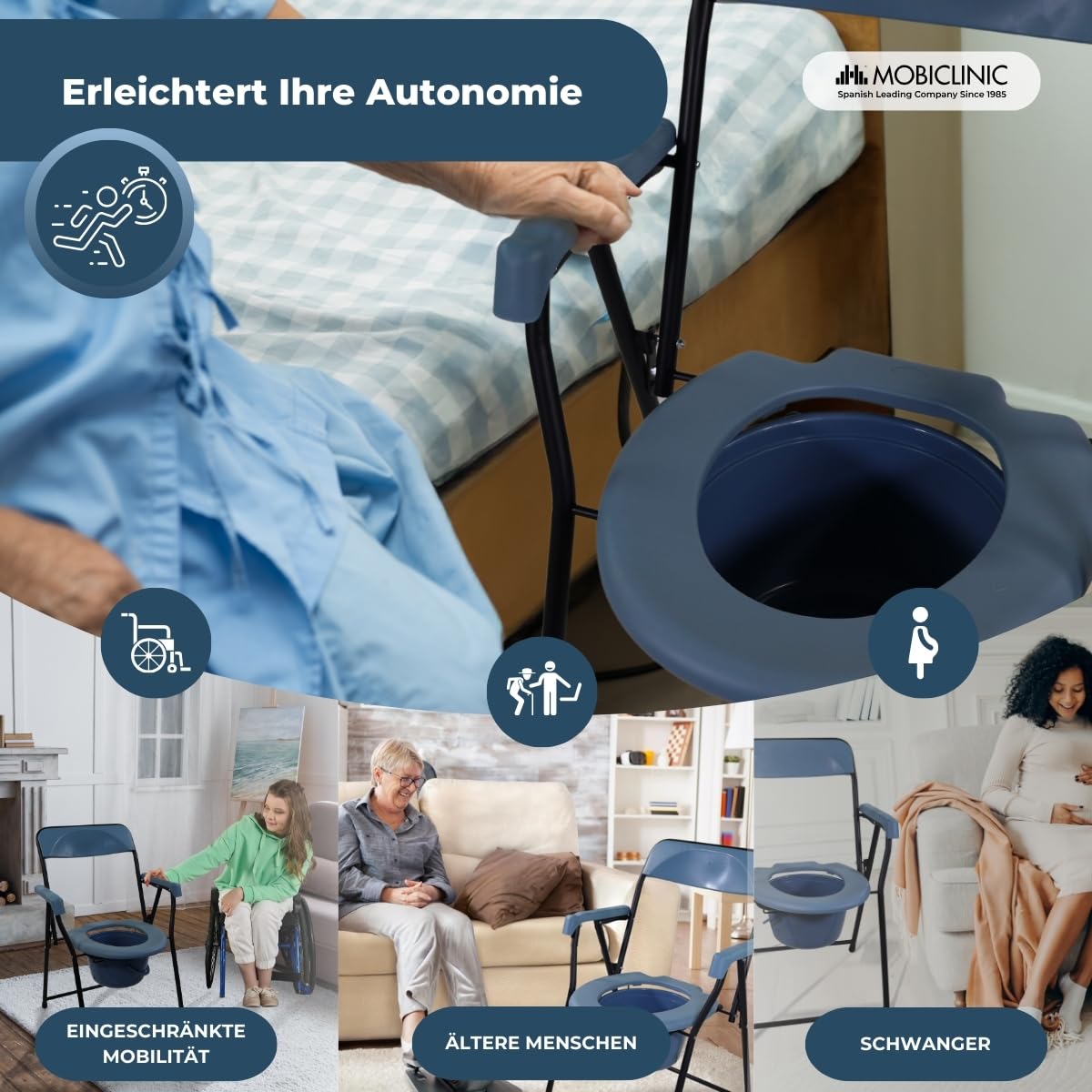 Mobiclinic®, Kloze senioriem, Eiropas zīmols, Salokāms tualetes pods, Ergonomisks ar roku balstiem, Vāks ar spaiņa formu, Izturīgs, Līdz 100 kg, Modelis timón