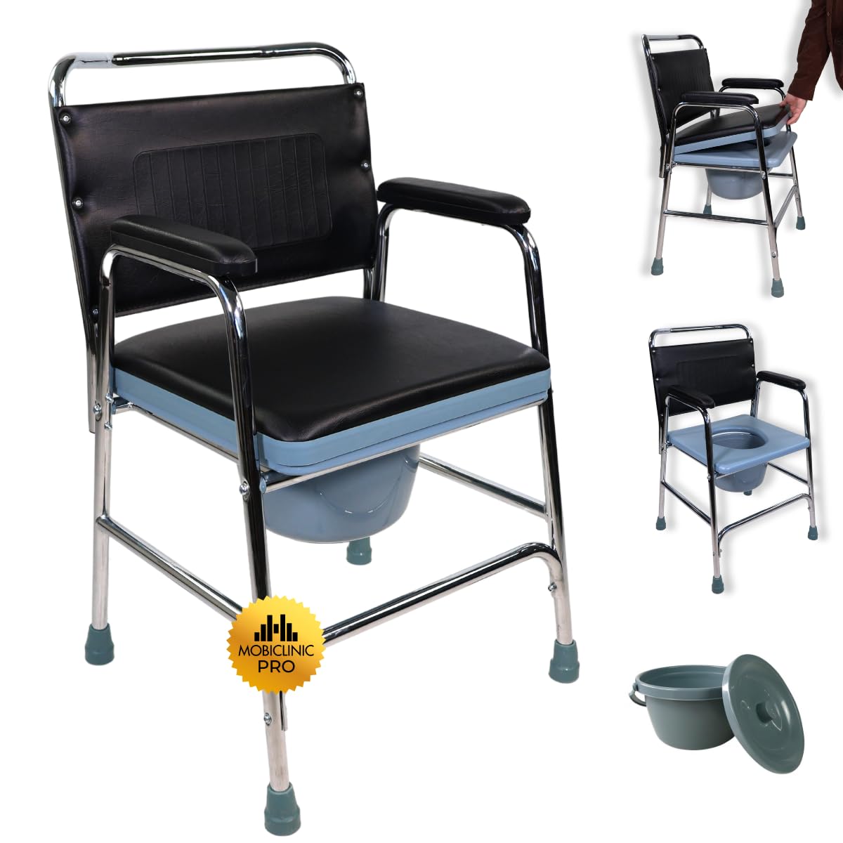 Mobiclinic®, tualetes krēsls, Velero, Eiropas zīmols, tualetes poda sēdeklis vecāka gadagājuma cilvēkiem un cilvēkiem ar invaliditāti, tualetes poda krēsls, neslīdošs, ar vāku, polsterēti roku balsti sēdeklī