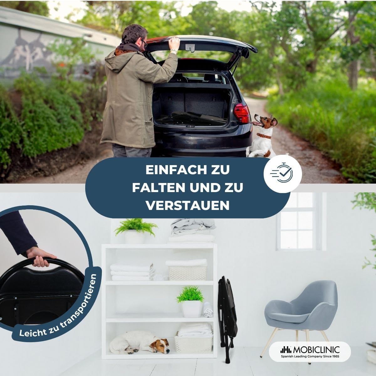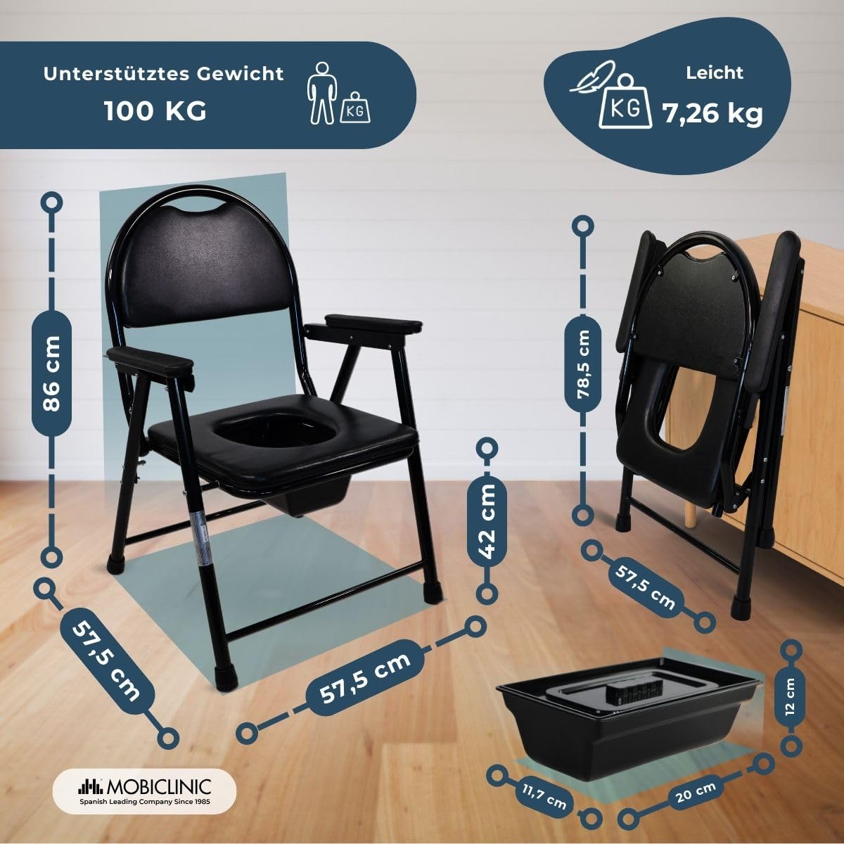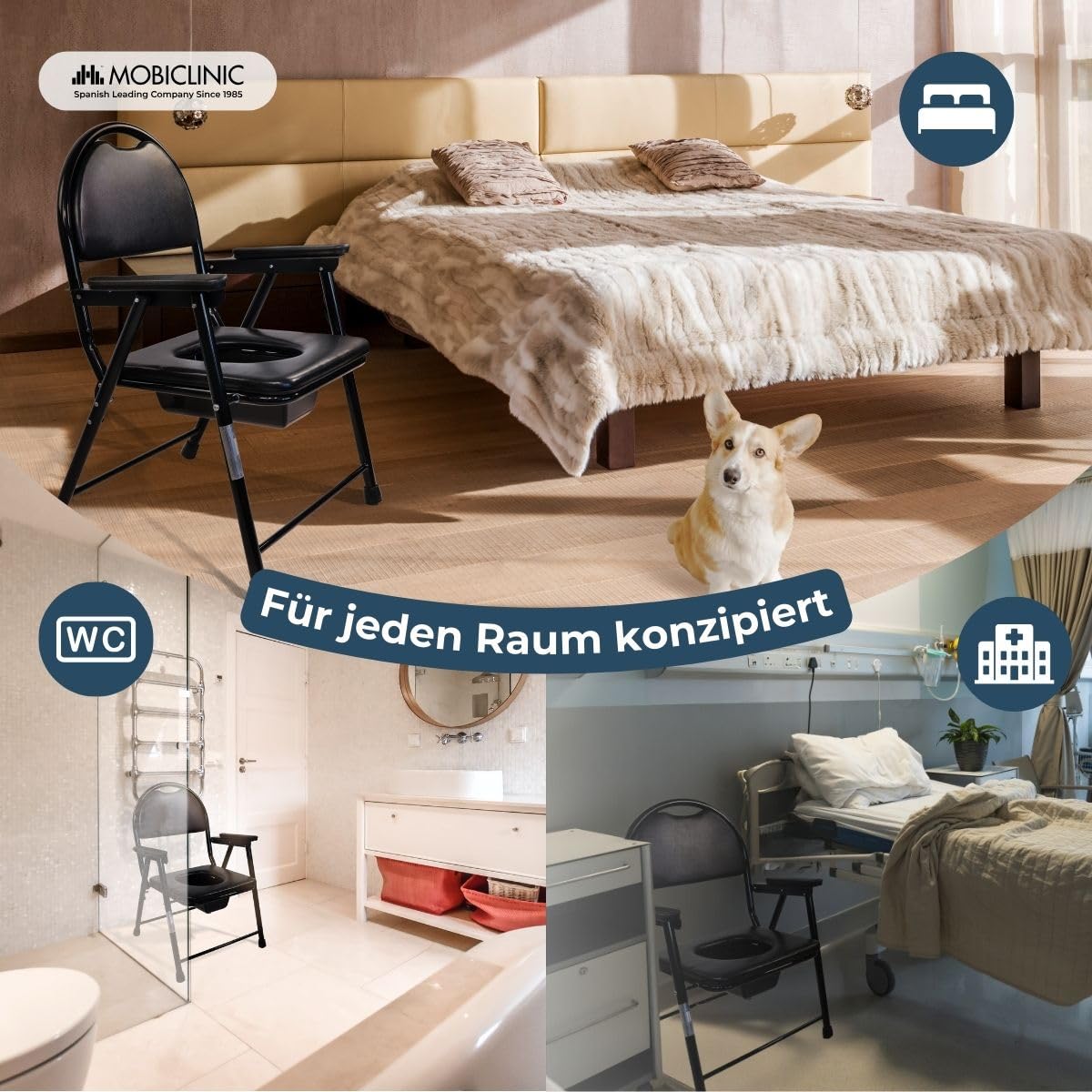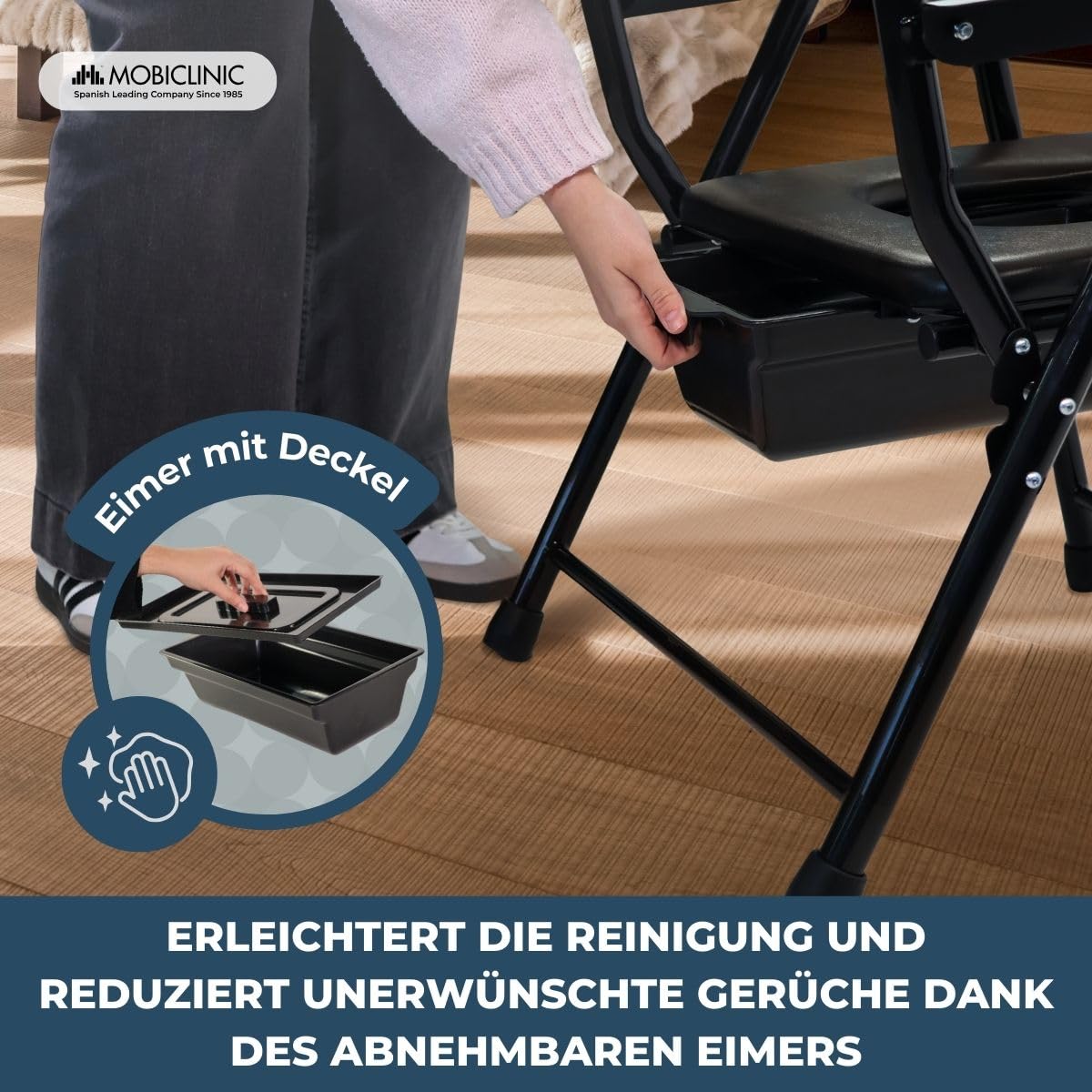 Mobiclinic, tualetes krēsls, Guadalquivir, Eiropas zīmols, tualetes poda sēdeklis vecāka gadagājuma cilvēkiem un cilvēkiem ar invaliditāti, tualetes poda sēdeklis, neslīdošs, salokāms, hromēts tērauds, viegls, melns