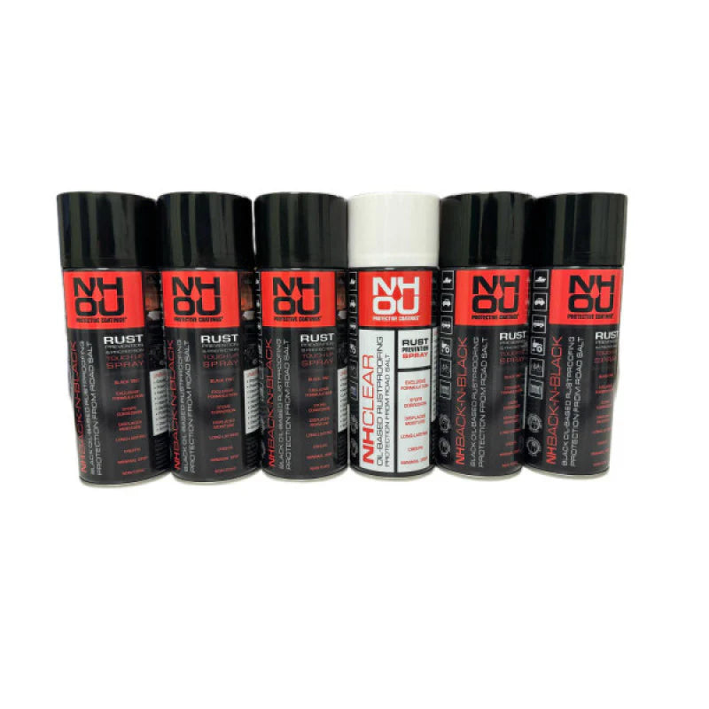Das NHOU® Oil Coating 6-Pack Set bietet einen Rundumschutz für Fahrzeuge, Maschinen und Metallkonstruktionen. Mit 5 schwarzen Aerosoldosen und 1 transparenten Dose bietet dieses Set sowohl überlegene Korrosionsbeständigkeit als auch ästhetische Flexibilität.