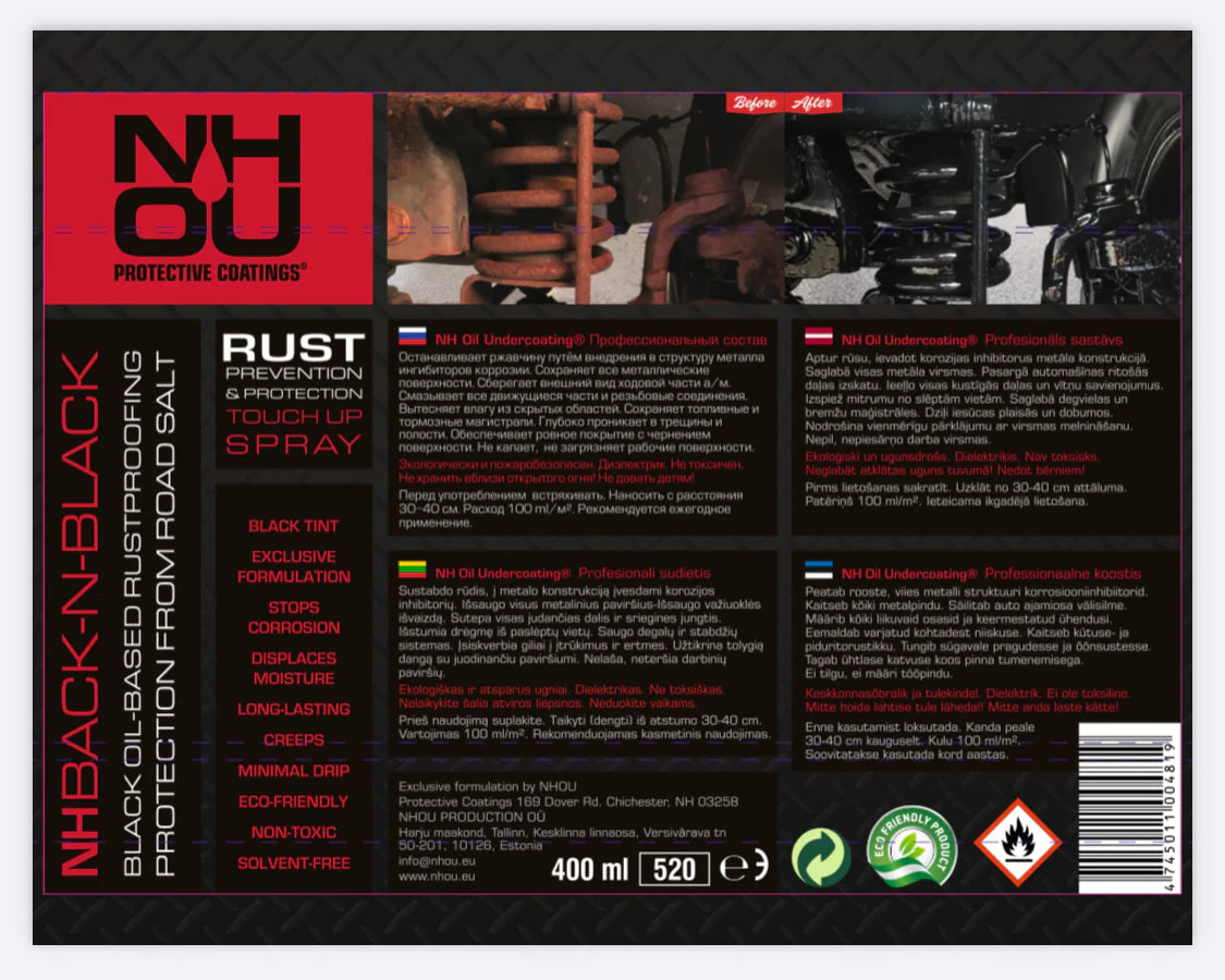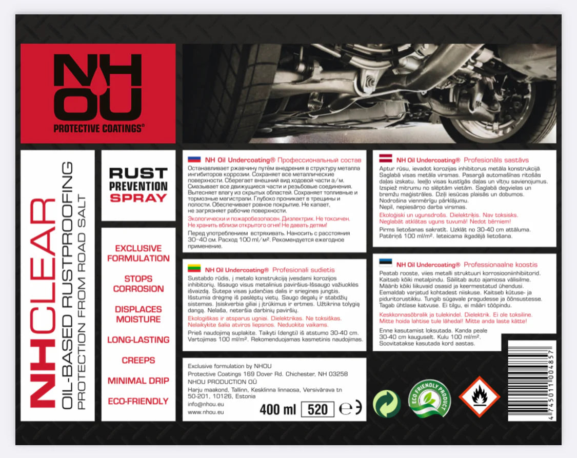 Jede Dose enthält die raffinierte Mineralölformel von NHOU mit grünen Korrosionsinhibitoren, die einen sicheren, umweltfreundlichen und lang anhaltenden Schutz gegen Rost, Salz und Feuchtigkeit bietet.