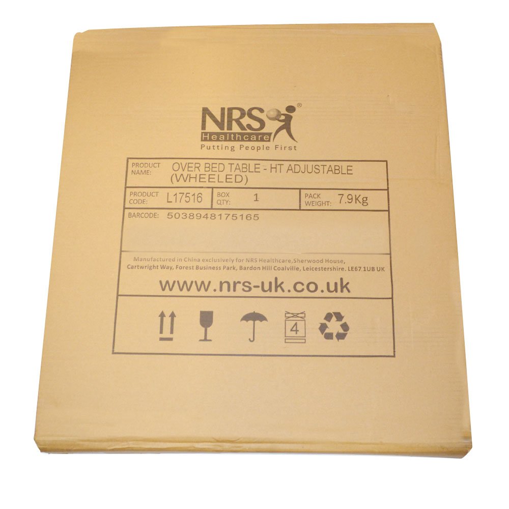 Galds ir izgatavots no pulverkrāsota, hromēta tērauda, kas padara to uzticamu un stabilu. Rāmis ir balts un tam ir četri melni ritentiņi ar bloķējošām bremzēm, kuras aktivizējas, tos salokot uz augšu, noturot galdu vēlamajā pozīcijā. Ritentiņi ir piemēroti gultām un krēsliem, un attālums starp grīdu un sēdekļa vai guļvietas apakšpusi ir vismaz 100 mm. Galdu var piespiest tuvu ķermenim, kas ir īpaši noderīgi ēšanas laikā.